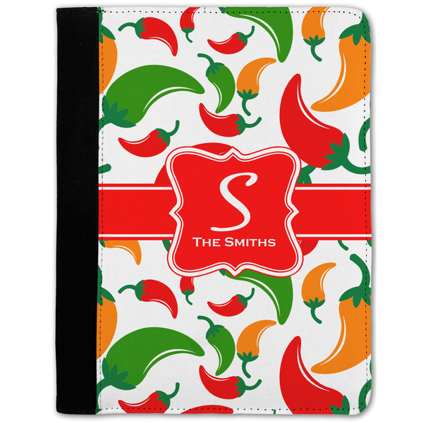 These personalized padfolios are made from a black, polyester microfiber and features a standard, 50-page notepad. However, these black padfolios can accommodate a pad with up to 100 pages. This model also features a slot pocket for any loose sheets of paper, small pockets for business cards, and an elastic band to secure a pen. We print your personalization across the front of this notepad portfolio in bright, vibrant color. These padfolios come in 2 sizes, Medium - approximately 10.25" x 8" for 5" x 8" paper and Large - approximately 12.5" x 8.5" for 8.5" x 11" paper.