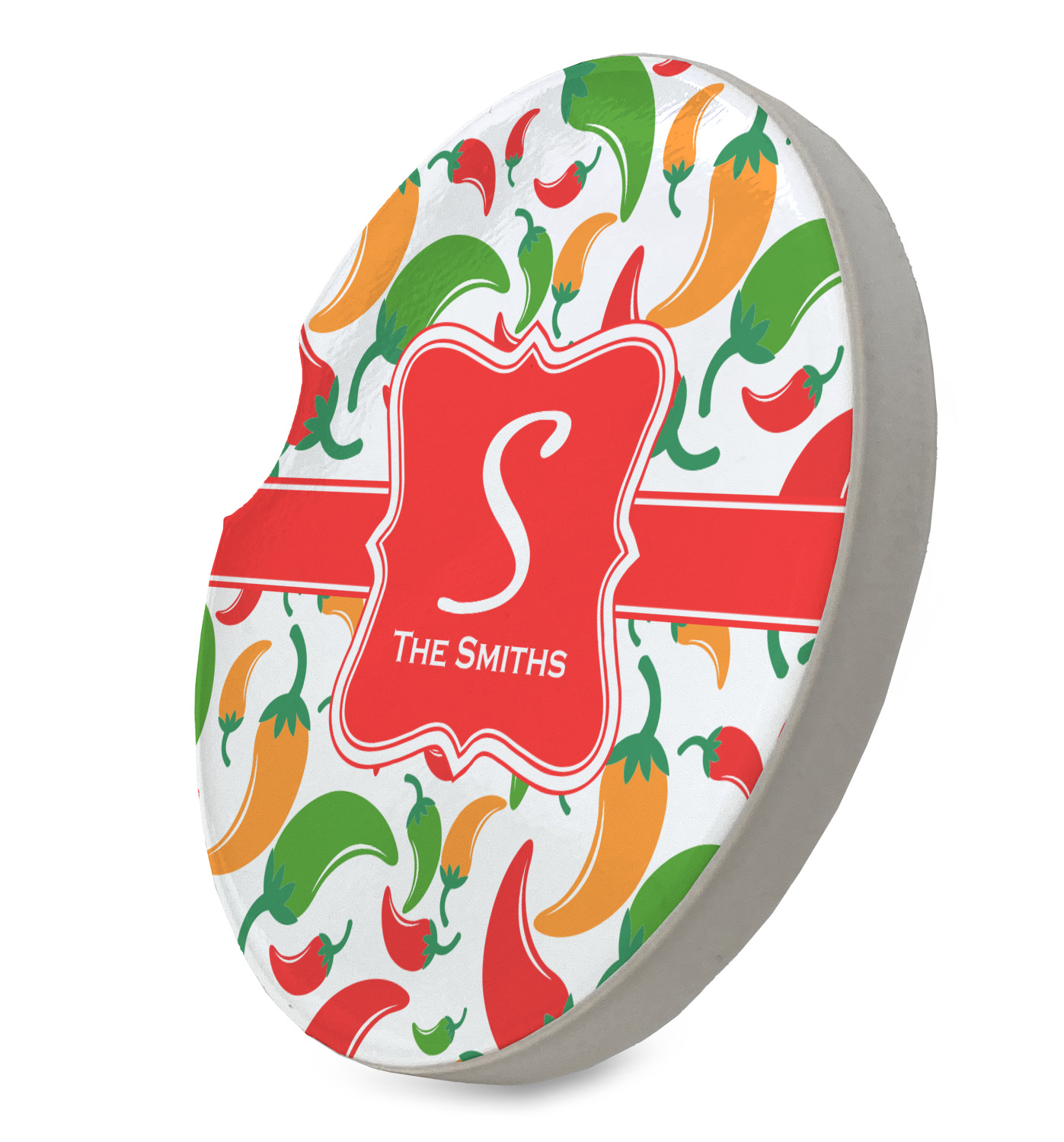These sandstone coasters are round, robust, and feature a smoothed glossy side to exhibit your customized design. With a 2.5 inch diameter, these stone coasters will fit snugly inside most cup holders. This model also features a semi-circle shaped divot that allows for easy removal, despite the tight fit. You can purchase these car cup holder coasters in a pair, or singularly, depending on your needs.