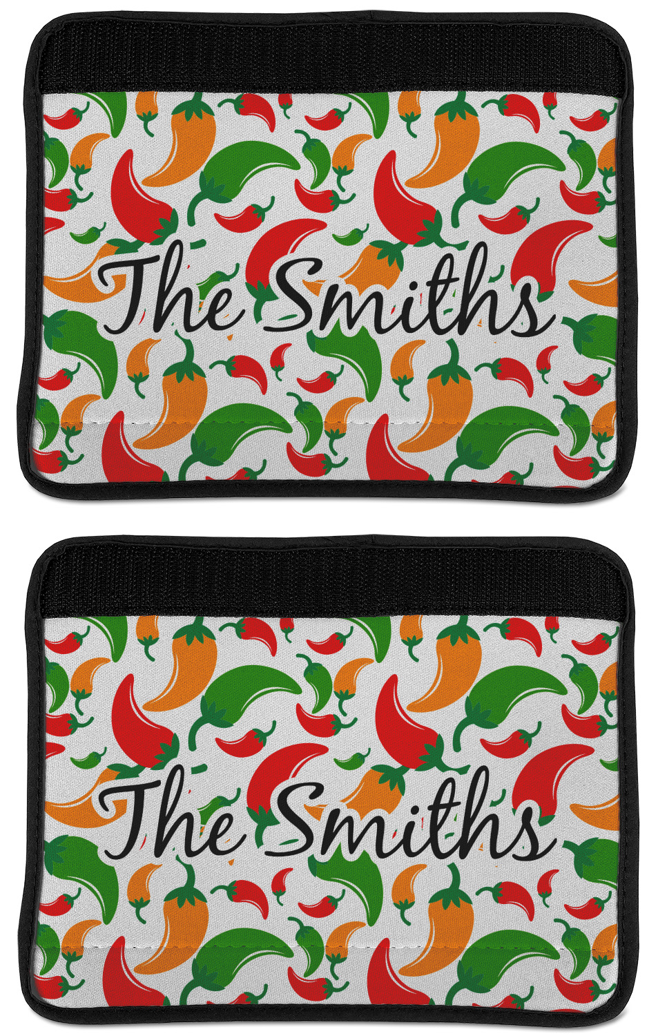 Made from neoprene, our seat belt strap covers wrap around the belt itself and have a Velcro tab for easy attachment and closure. The belt's edges are trimmed with a black polyester for a secure finish. Each cover is 9.5 by 7 inches when open and 9.5 by 2.5 inches when closed. We print your personalized design on the face of the seat belt pad.