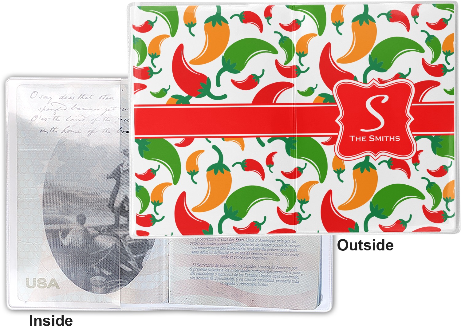 This cover is made of a sturdy clear vinyl with a personalized vinyl insert inside. There is a large and a small pocket on either side to hold the covers of your passport easily and firmly. The passport holder is approximately 7.5" x 5.25", the perfect size to snugly fit your passport. This slim cover is the perfect way to protect your passport without being one more bulky item you have to carry.