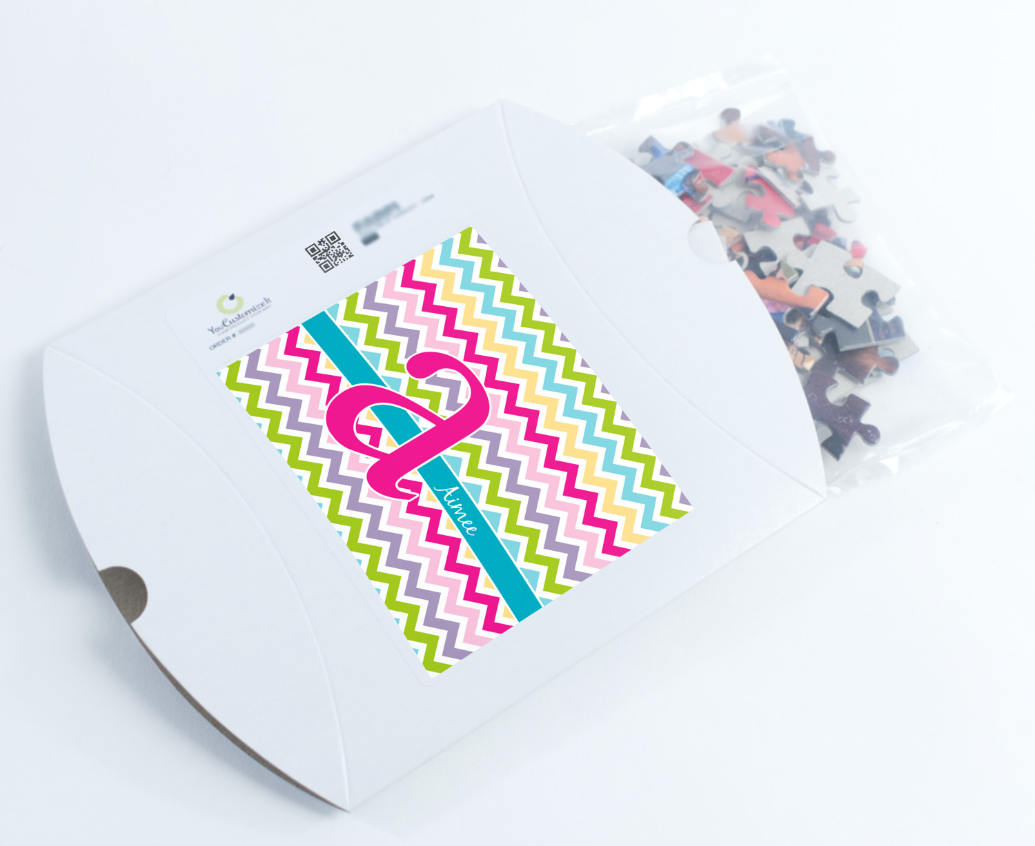 You can also upload your logo or art that you or your kids drew. To create more challenging jigsaw puzzles, you can create a pattern from with your logo or artwork. You can also add other elements such as text or personalization.