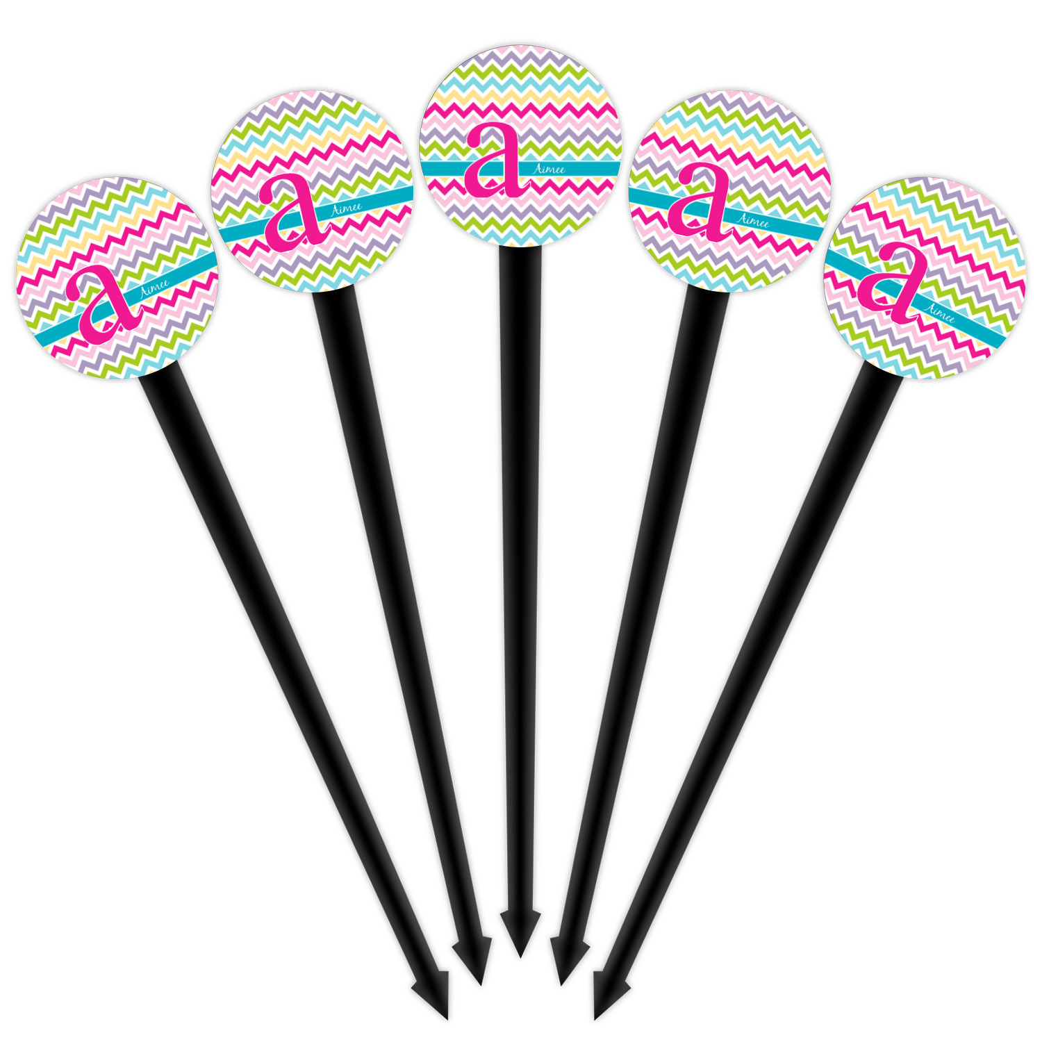 Our plastic cocktail picks have a round disc on top that is printed in full color with your event theme, colors, your logo, your photo, names, initials, monograms etc.