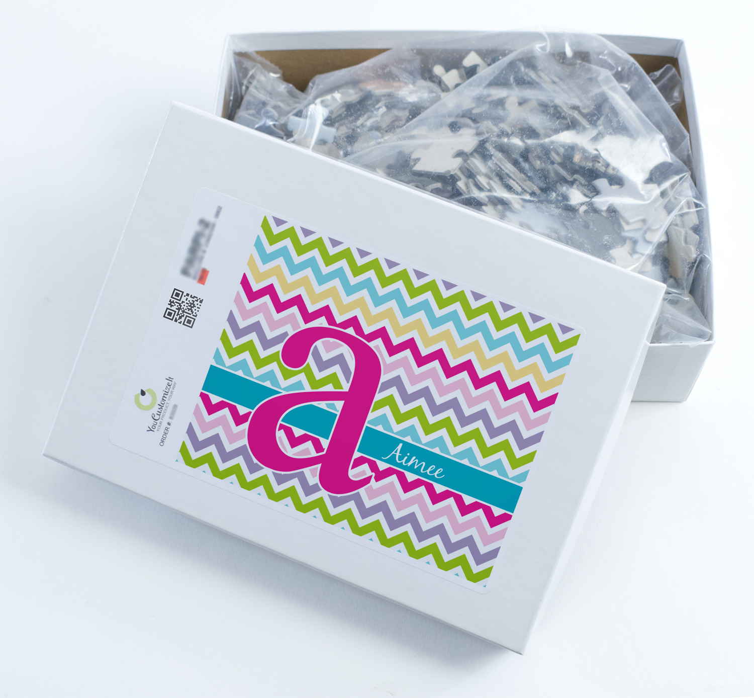 We print our puzzles on thick white chipboard in vibrant colors, then laminate the chipboard and die cut your puzzle. Your jigsaw puzzle is shipped to you in a box with the image of the puzzle on the box.