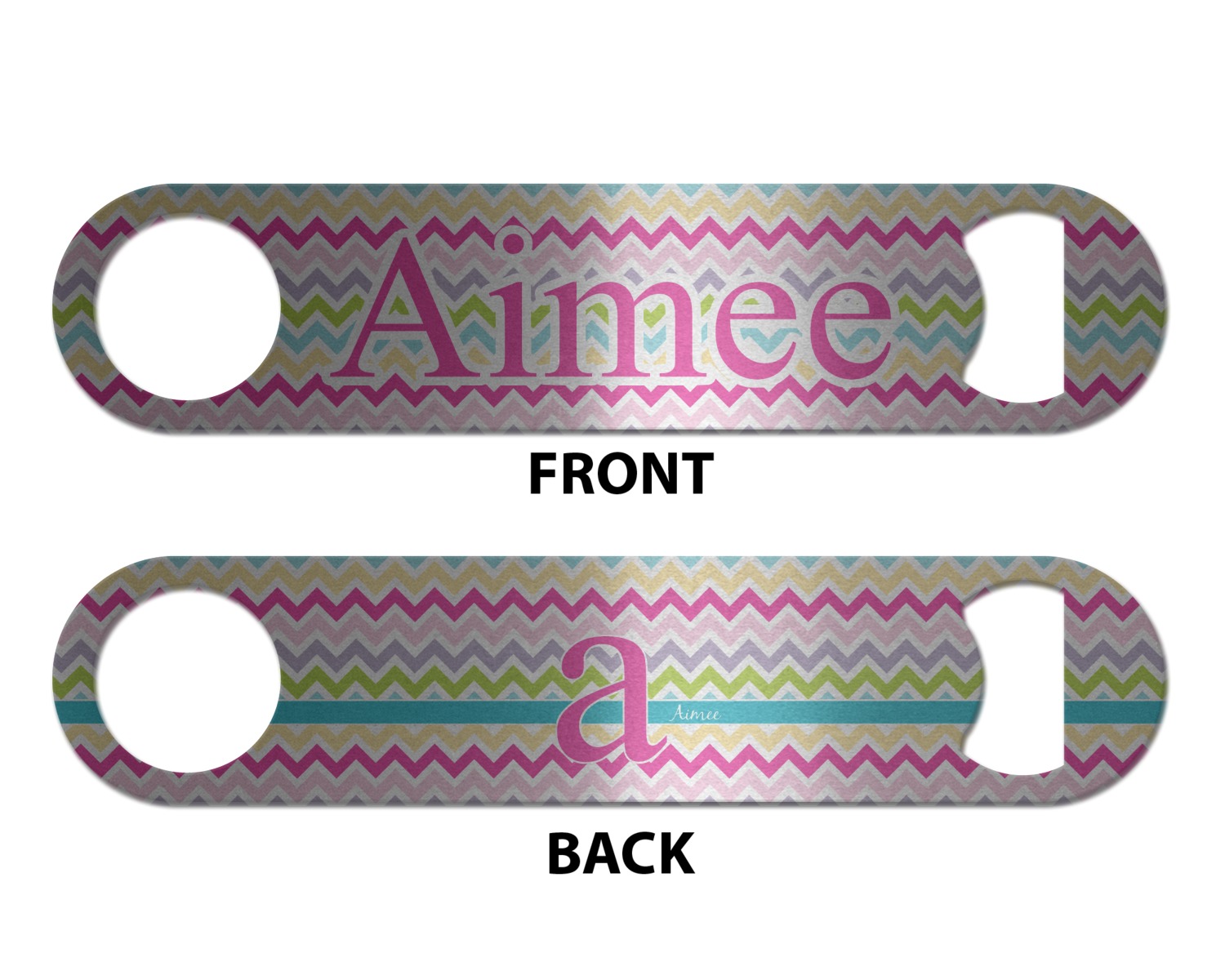 Made from stainless steel, these beer bottle openers are 7 by 1.625 inches, giving you plenty of leverage when trying to open a stubborn bottle. On one end of this personalized bottle opener, you'll find a circular hole for you to hang and display your opener. On the opposite end, you'll find the tool used for opening bottles. This opener in particular has the same structure and style as professional bartender bottle openers. Your customization is sublimated onto both the back and front, and both sides can be customized individually. Choose from one of our two base colors - white or silver.