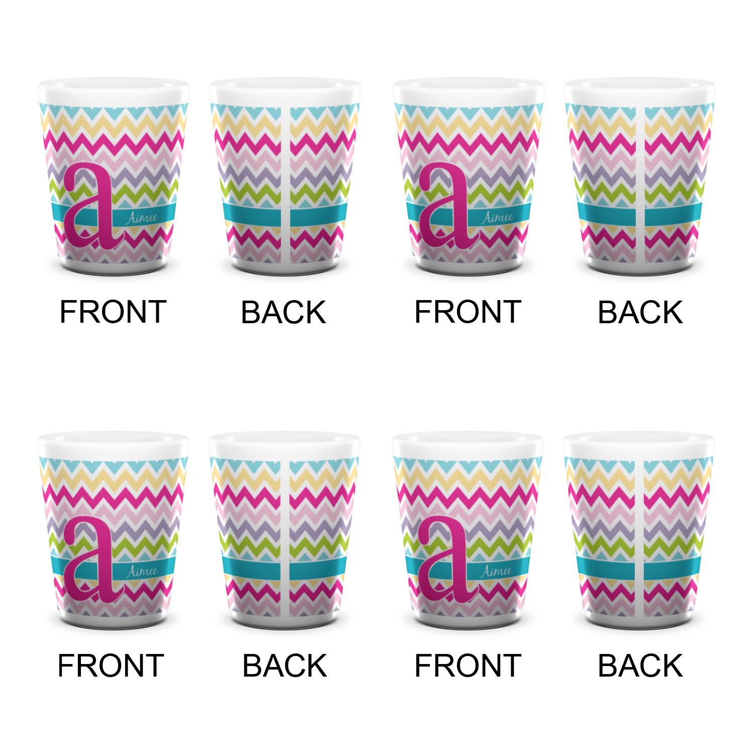 Made from ceramic these shot glasses are printed in full color with the design of your choice. These are a standard 1.5oz size and stand 2.25" tall. Available in a full white ceramic or a two-tone with a black color inside the shot glass. Buy a single or a set of 4, all of which can be designed separately to get you just what you want and need.