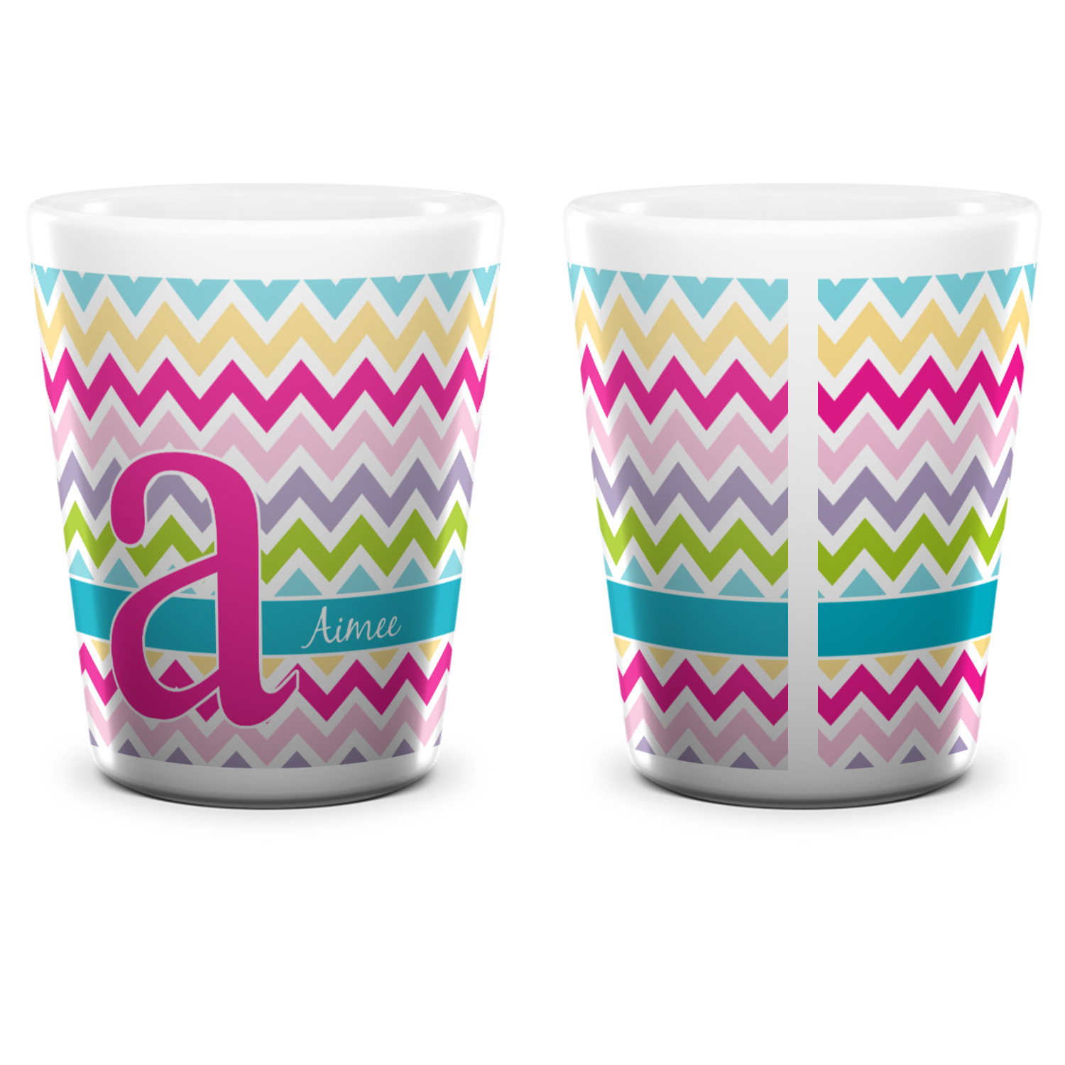 Made from ceramic these shot glasses are printed in full color with the design of your choice. These are a standard 1.5oz size and stand 2.25" tall. Available in a full white ceramic or a two-tone with a black color inside the shot glass. Buy a single or a set of 4, all of which can be designed separately to get you just what you want and need.