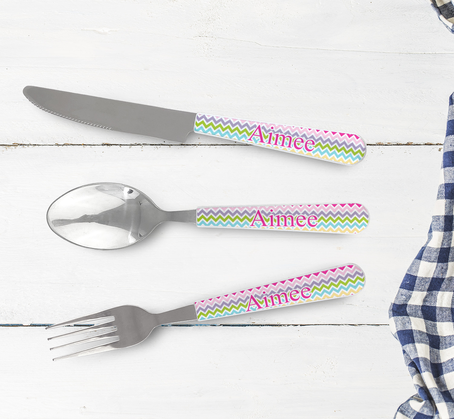 One of those items we all use on a daily basis and never give it much thought - cutlery. Having your own customized set of cutlery adds that special touch. A great addition to our custom plates and drinking pint glasses, this flatware set can be made in the same patterns to match.