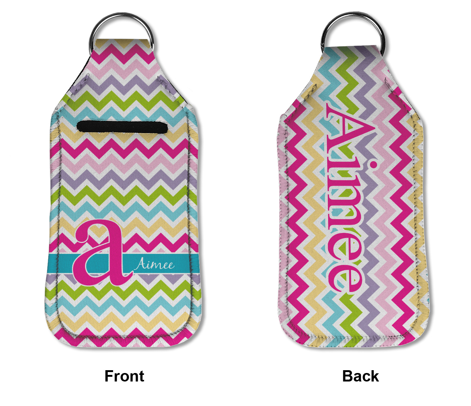Each hand sanitizer holder comes with its own empty travel-sized, refillable hand sanitizer sure to fit snug in your customized sanitizer case! Our hand sanitizer cases are a durable, yet soft neoprene material sure to last any daily activities or travel agenda. Customize and personalize a hand sanitizer bottle holder with one of our two sizes - small (4.25" x 2.25") or large (5.5" x 2.5"). Each travel sanitizer holder comes with a keyring for attachment on bags, keys, or more!