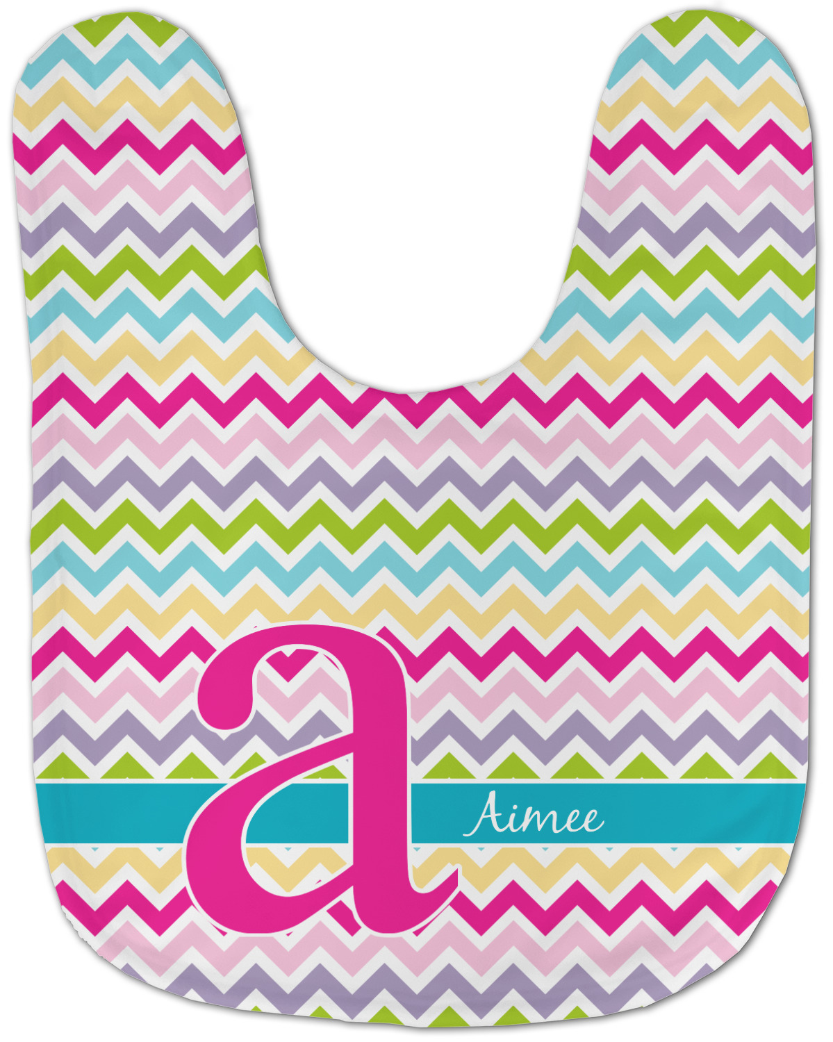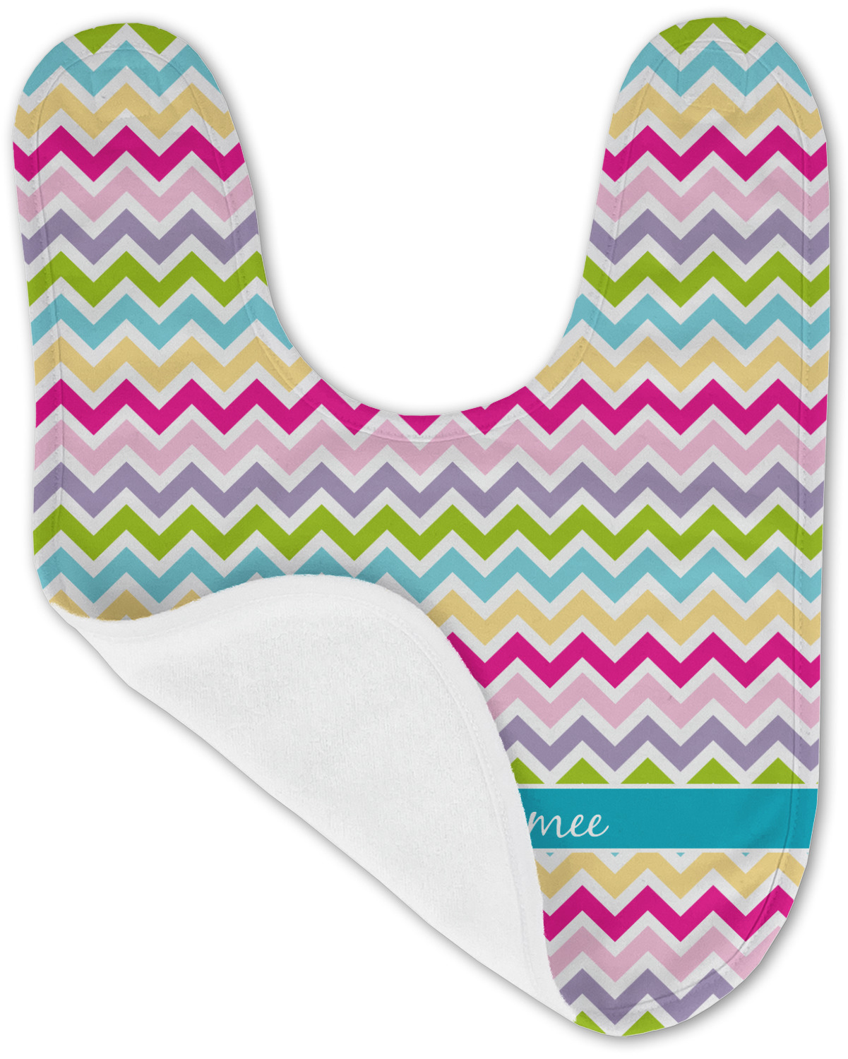 Made of soft polyester, each customizable bib hugs comfortably around the neck to catch every drip and drool. Each bib design is printed with baby-safe ink and finished with a secure stitch pattern and velcro clasp. We carry two customizable bib styles -Microfiber Velour and Jersey Knit.