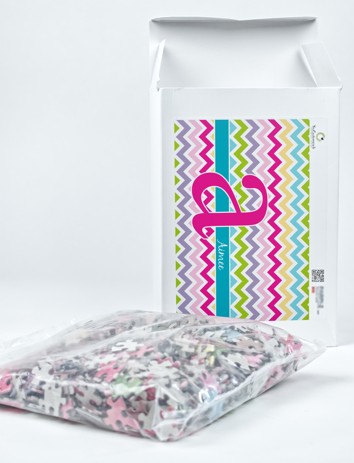 You can also upload your logo or art that you or your kids drew. To create more challenging jigsaw puzzles, you can create a pattern from with your logo or artwork. You can also add other elements such as text or personalization.