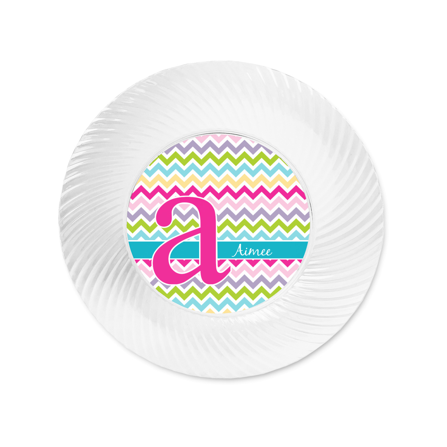 Made from a beautiful clear plastic plate as a base, your design is printed to the underside of the plate. The outside of the plate has a classic swirl texture to it for a high quality look and feel.