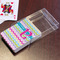 The customization / personalization is printed on the back side. The playing cards have a low gloss coating on both sides. The cards are packaged in a clear plastic box.