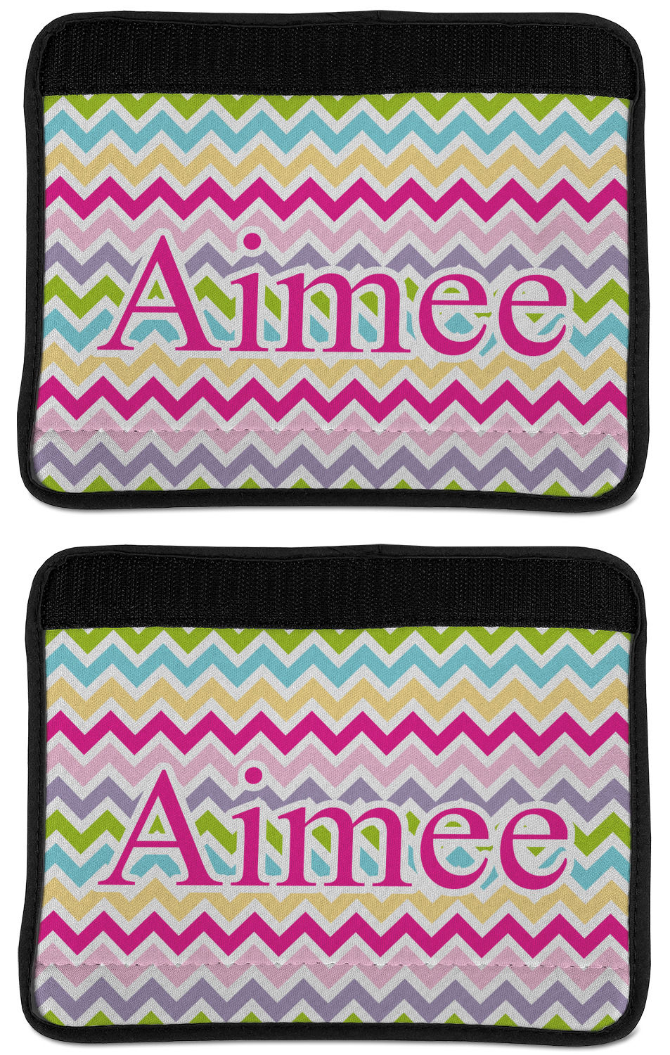 Made from neoprene, our seat belt strap covers wrap around the belt itself and have a Velcro tab for easy attachment and closure. The belt's edges are trimmed with a black polyester for a secure finish. Each cover is 9.5 by 7 inches when open and 9.5 by 2.5 inches when closed. We print your personalized design on the face of the seat belt pad.