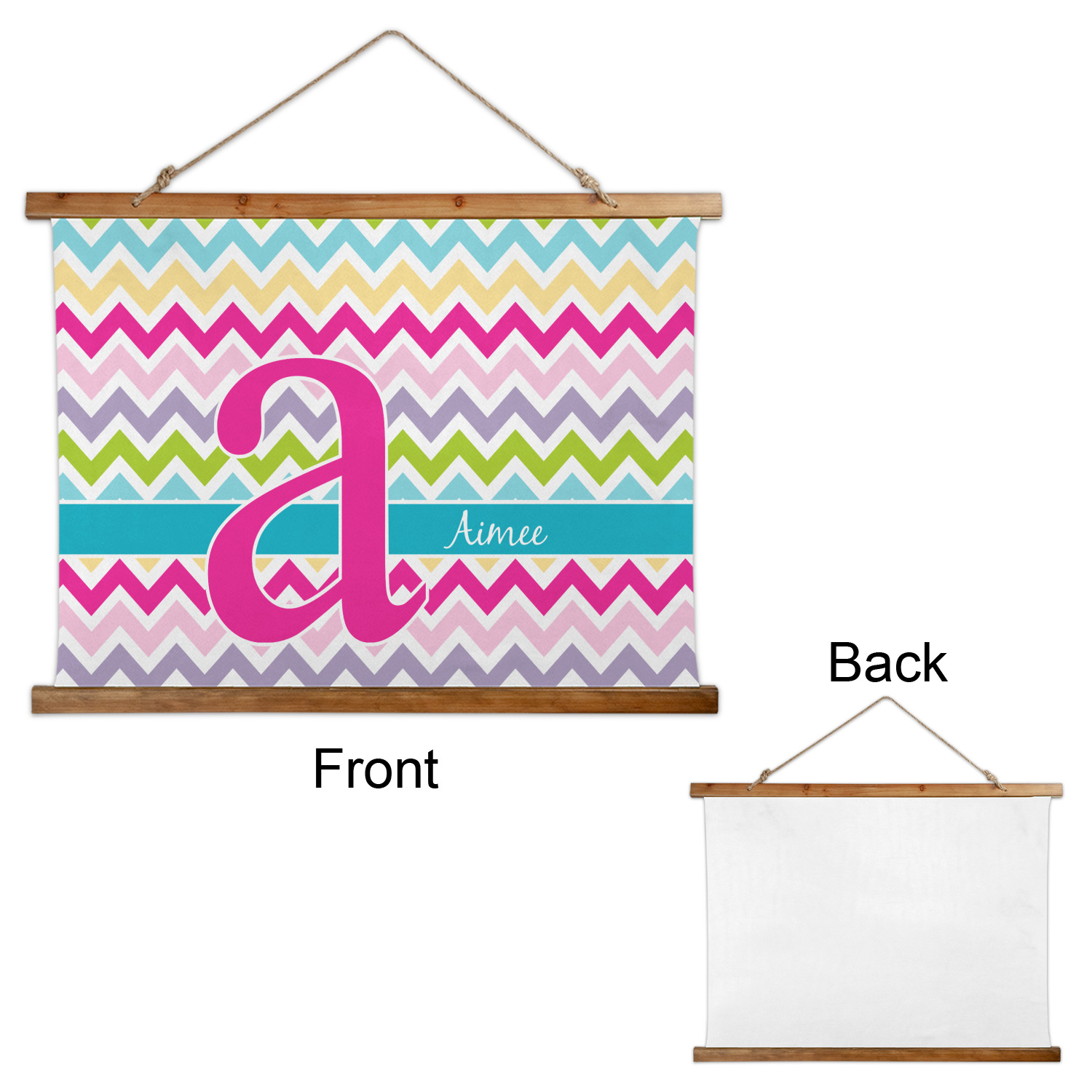 Made in two different orientations - portrait or landscape - both are 26" x 36". Your design is printed on a high quality polyester fabric with hemmed edges. The wood on the top and bottom of the tapestry is 1.25" tall and 0.25" thick and there are two pieces on top and bottom which sandwich the fabric.