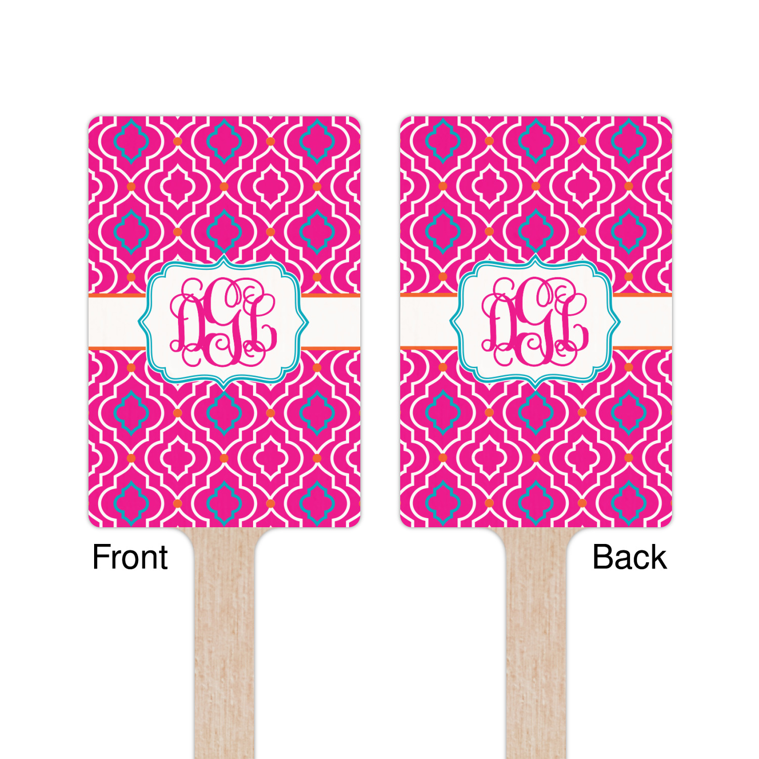 A fancy white label outlined in pink and turquoise is used to showcase the personalization of your choice.