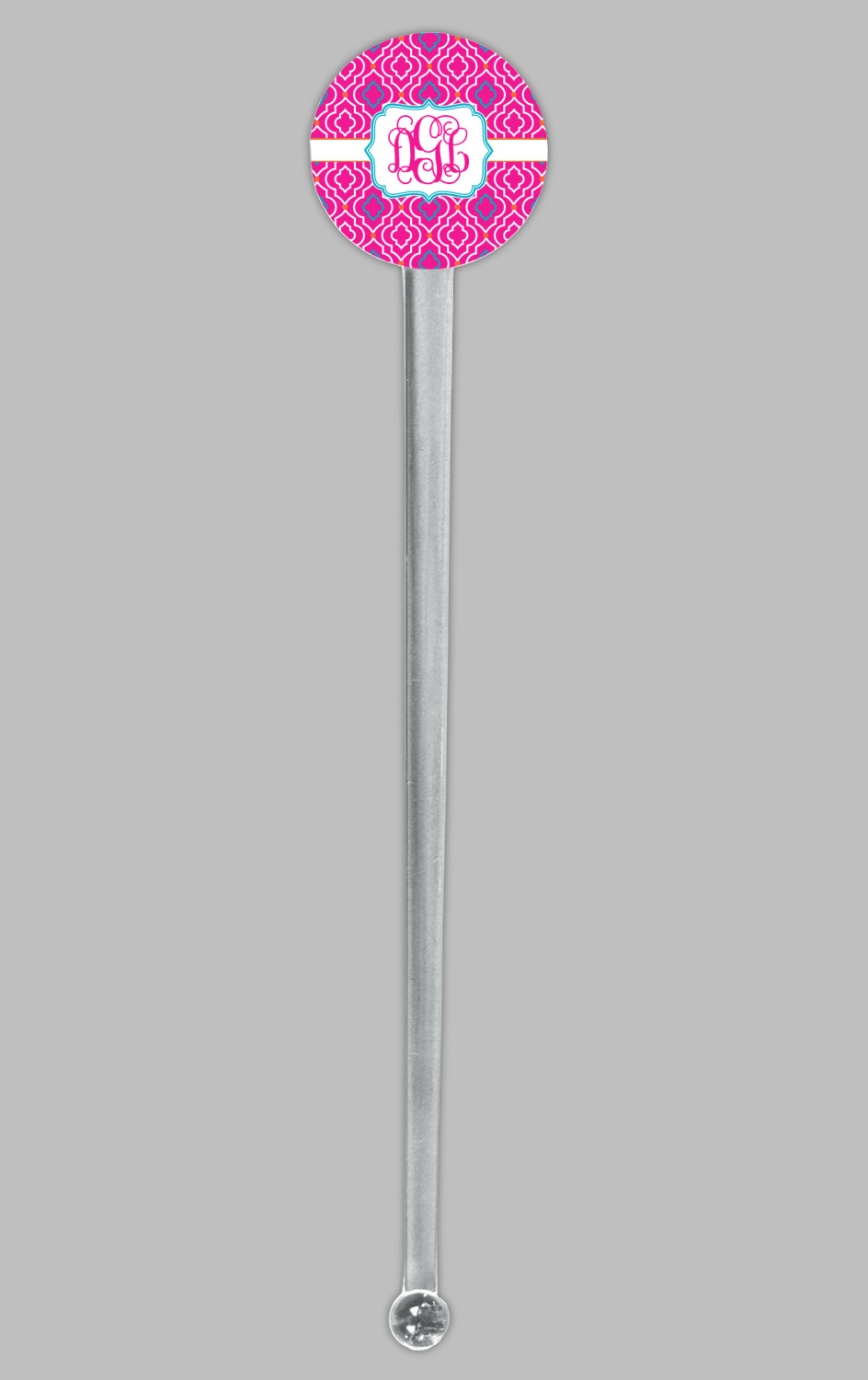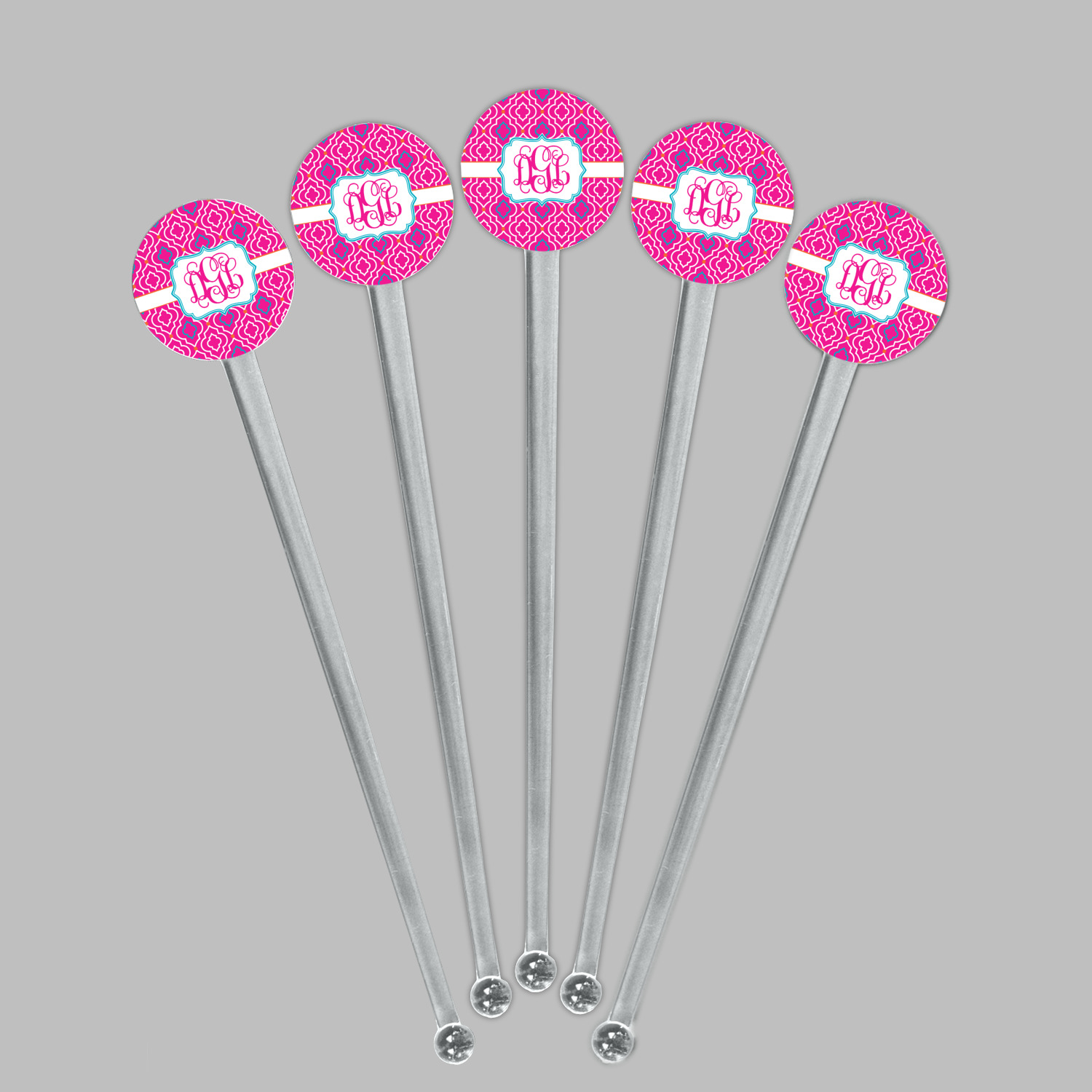 A fancy white label outlined in pink and turquoise is used to showcase the personalization of your choice.