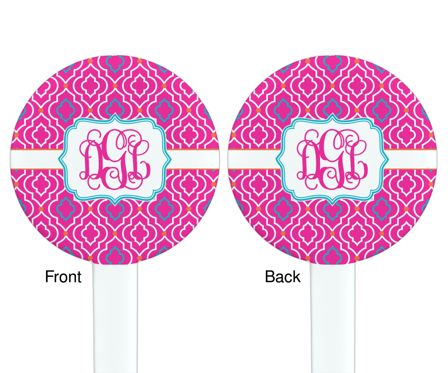A fancy white label outlined in pink and turquoise is used to showcase the personalization of your choice.
