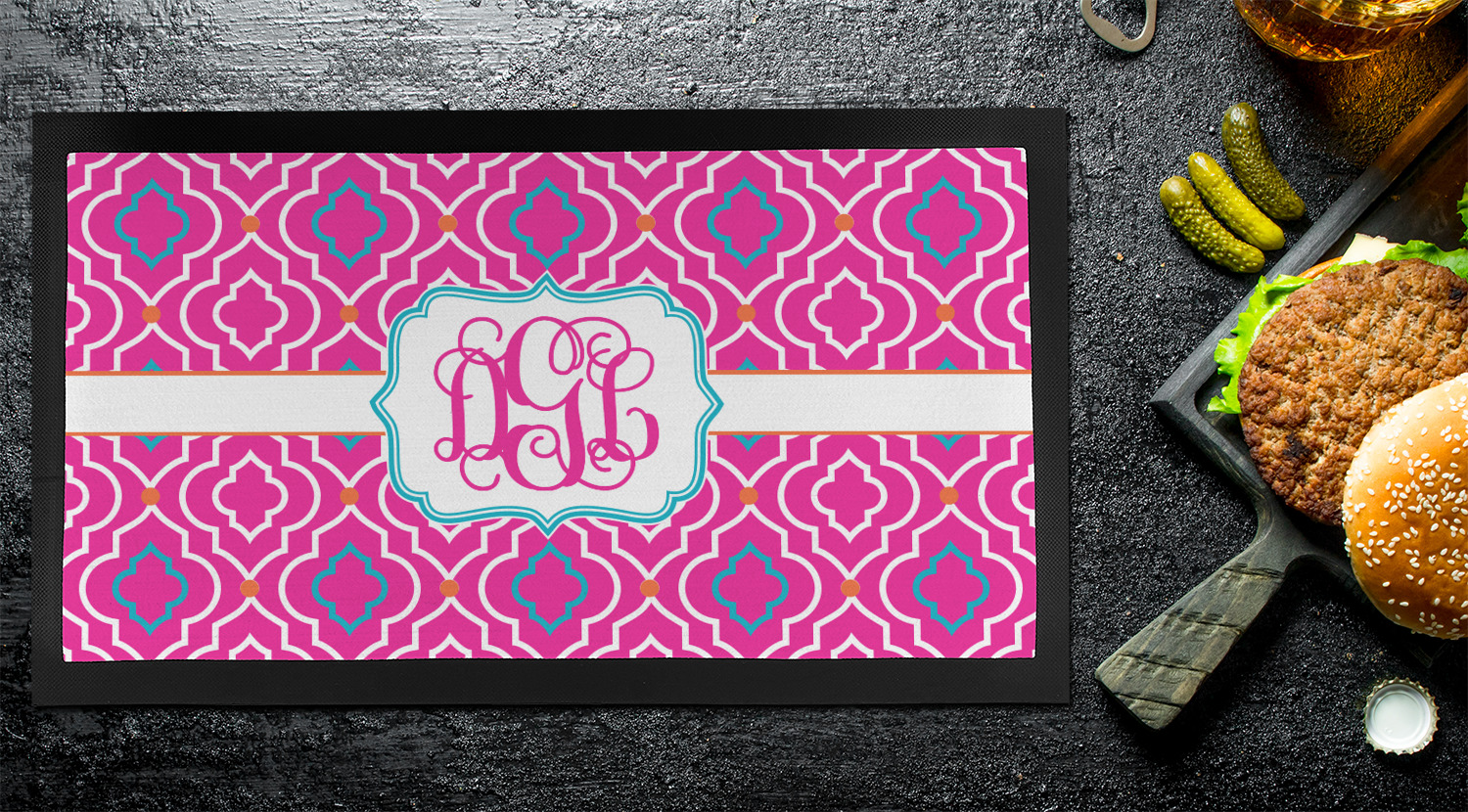 A fancy white label outlined in pink and turquoise is used to showcase the personalization of your choice.