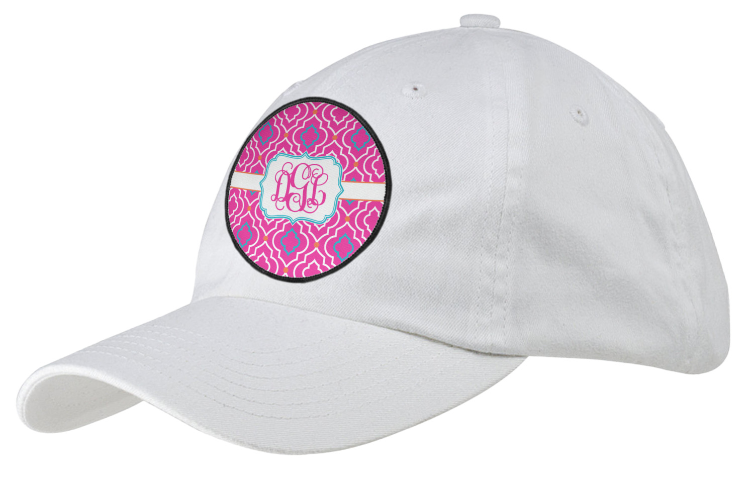 A fancy white label outlined in pink and turquoise is used to showcase the personalization of your choice.