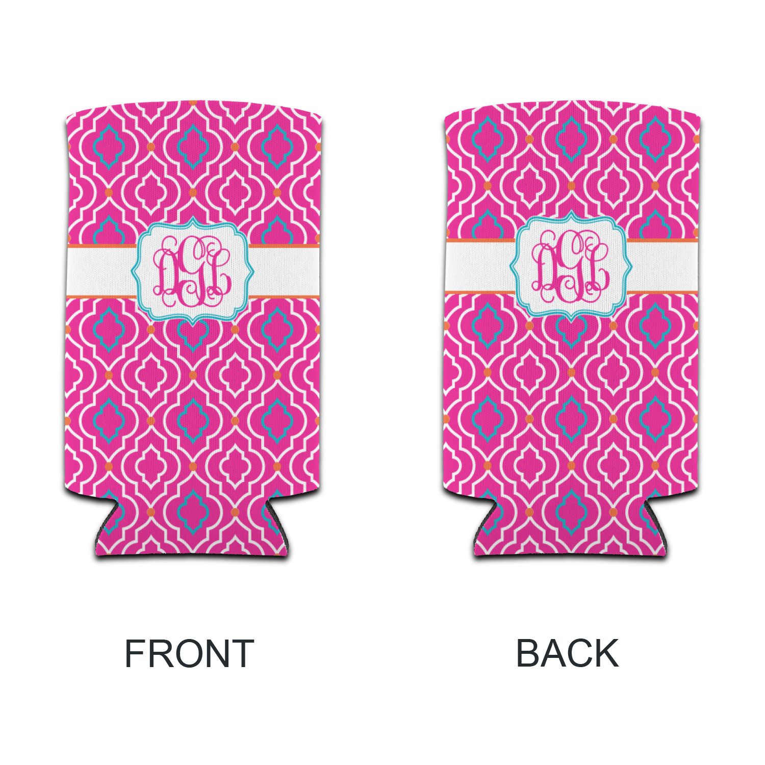 A fancy white label outlined in pink and turquoise is used to showcase the personalization of your choice.