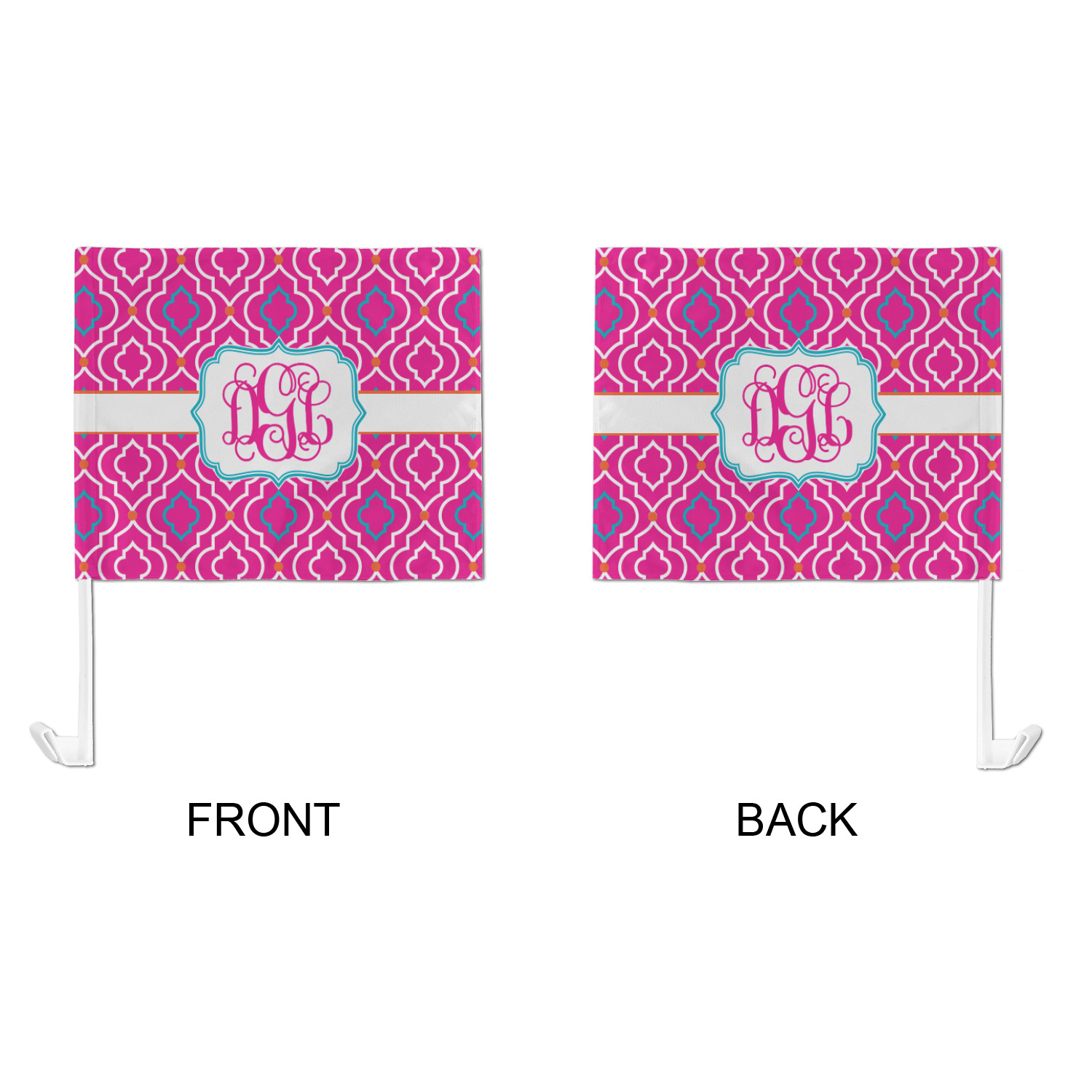 Our personalized flags are made from a durable, yet lightweight cloth that will proudly bear your logo or design of choice, while withstanding the outside elements. We have two size options - 8" x 11" and 11" x 15". Both come with a flag pole which includes a clip that secures the pole to the side window, whether it is rolled up or down. The flags are printed on both sides to display your design from all directions.
