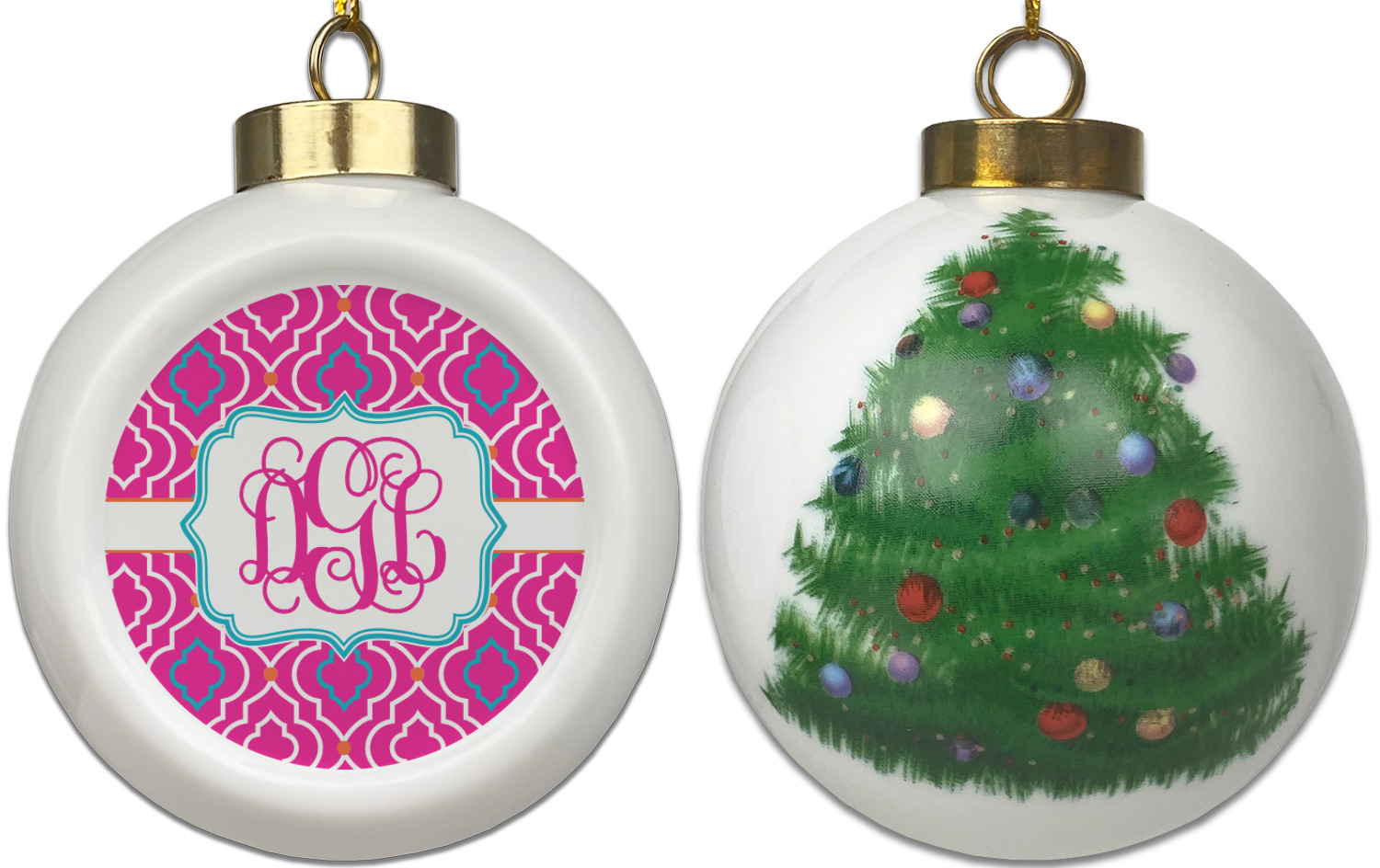 Our Christmas ornaments are a unique ceramic ball shape with a twist as it has a flat face to display your custom design! Select from one of our two design types - Christmas Tree or Poinsettia Garland - to adorn the curved back of your personal design. Each ornament measures 3H x 2.5W x 2D accompanied with a gold string accent for finishing touches to hang on your beautiful Christmas tree!