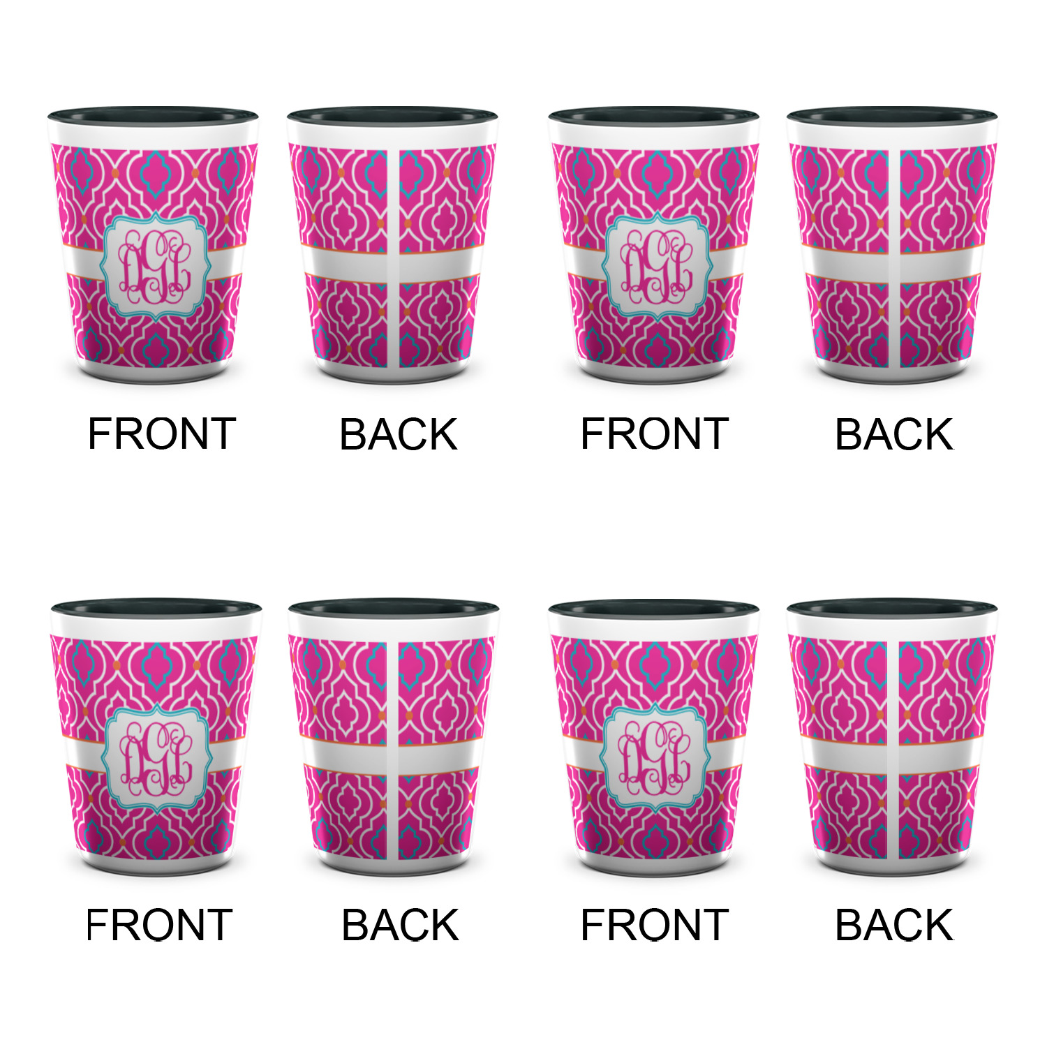 Made from ceramic these shot glasses are printed in full color with the design of your choice. These are a standard 1.5oz size and stand 2.25" tall. Available in a full white ceramic or a two-tone with a black color inside the shot glass. Buy a single or a set of 4, all of which can be designed separately to get you just what you want and need.