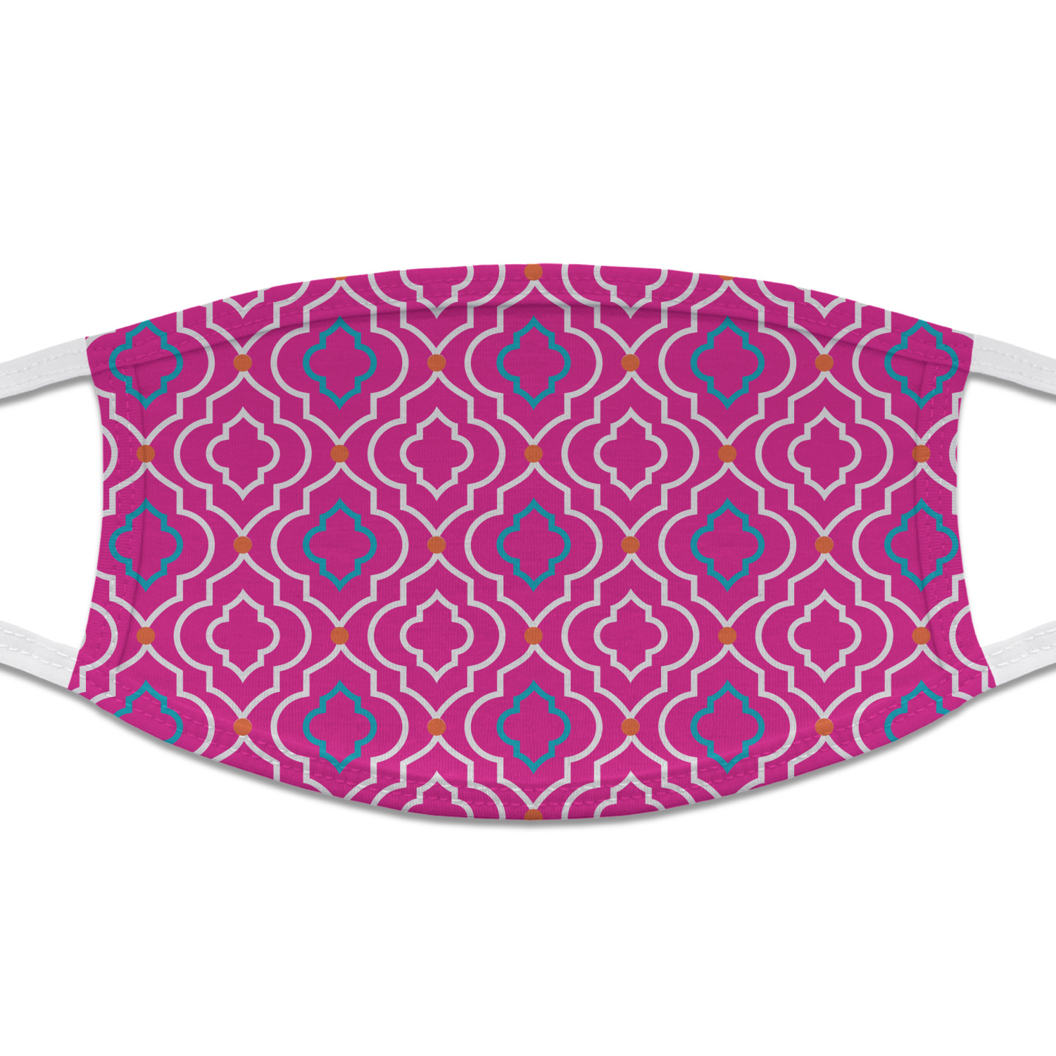 The masks are made from two layers of the soft jersey fabric. The outside layer will be printed with your design, while the inside layer is white. The body of the mask is trimmed and double stitched with the same jersey fabric. The masks are approximately 7 inches wide by 4.75 inches high