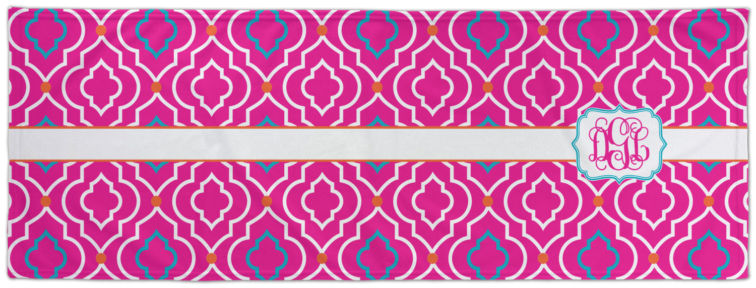 There is nothing old world about this Moroccan trellis design. Bright and vibrant pink, turquoise and orange come together to create one beautiful pattern. A wide white band trimmed in orange pulls the design together.