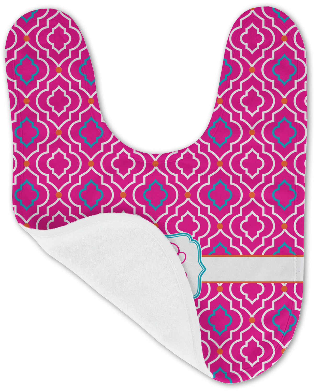 Made of soft polyester, each customizable bib hugs comfortably around the neck to catch every drip and drool. Each bib design is printed with baby-safe ink and finished with a secure stitch pattern and velcro clasp. We carry two customizable bib styles -Microfiber Velour and Jersey Knit.