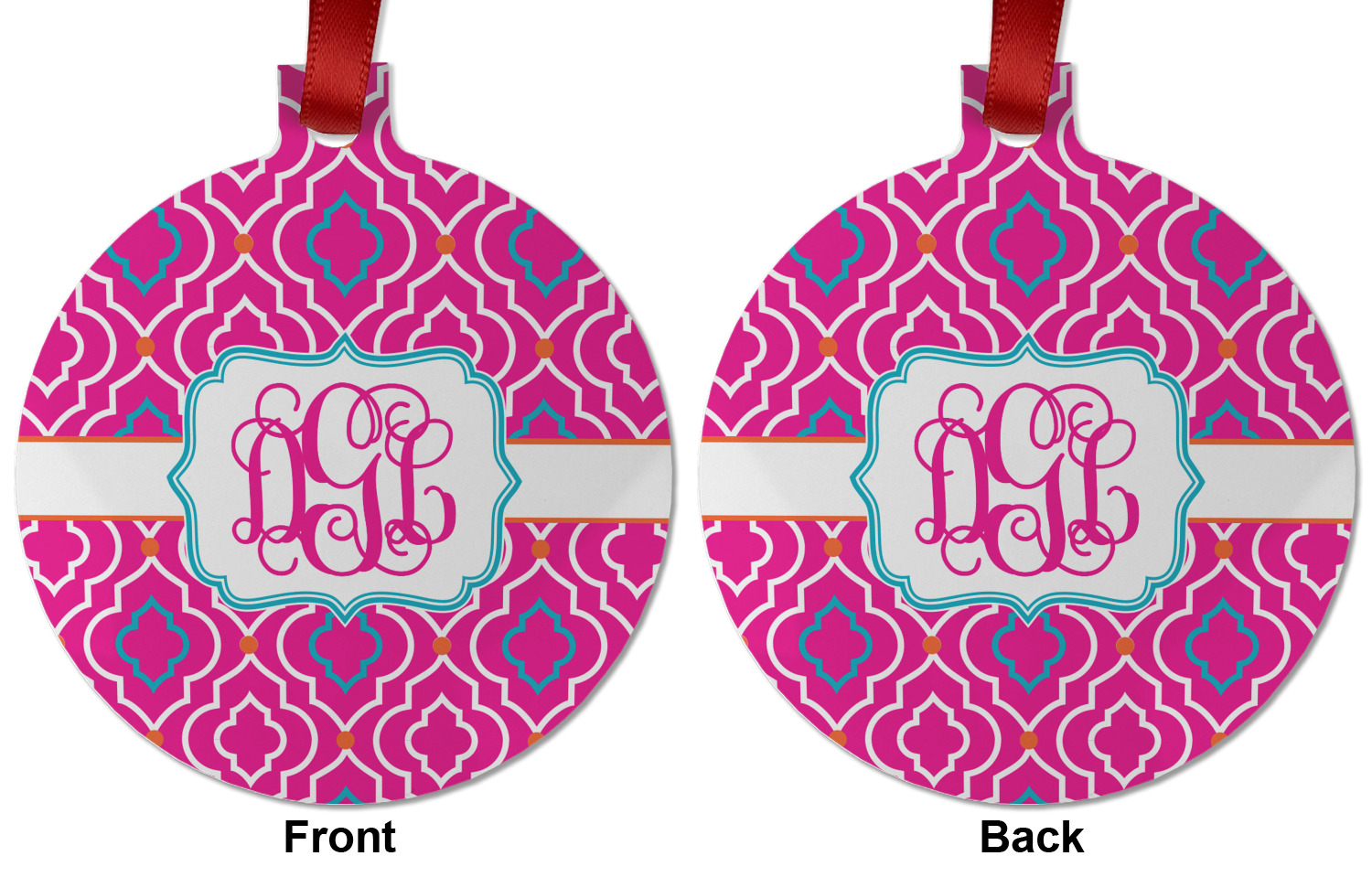 A fancy white label outlined in pink and turquoise is used to showcase the personalization of your choice.