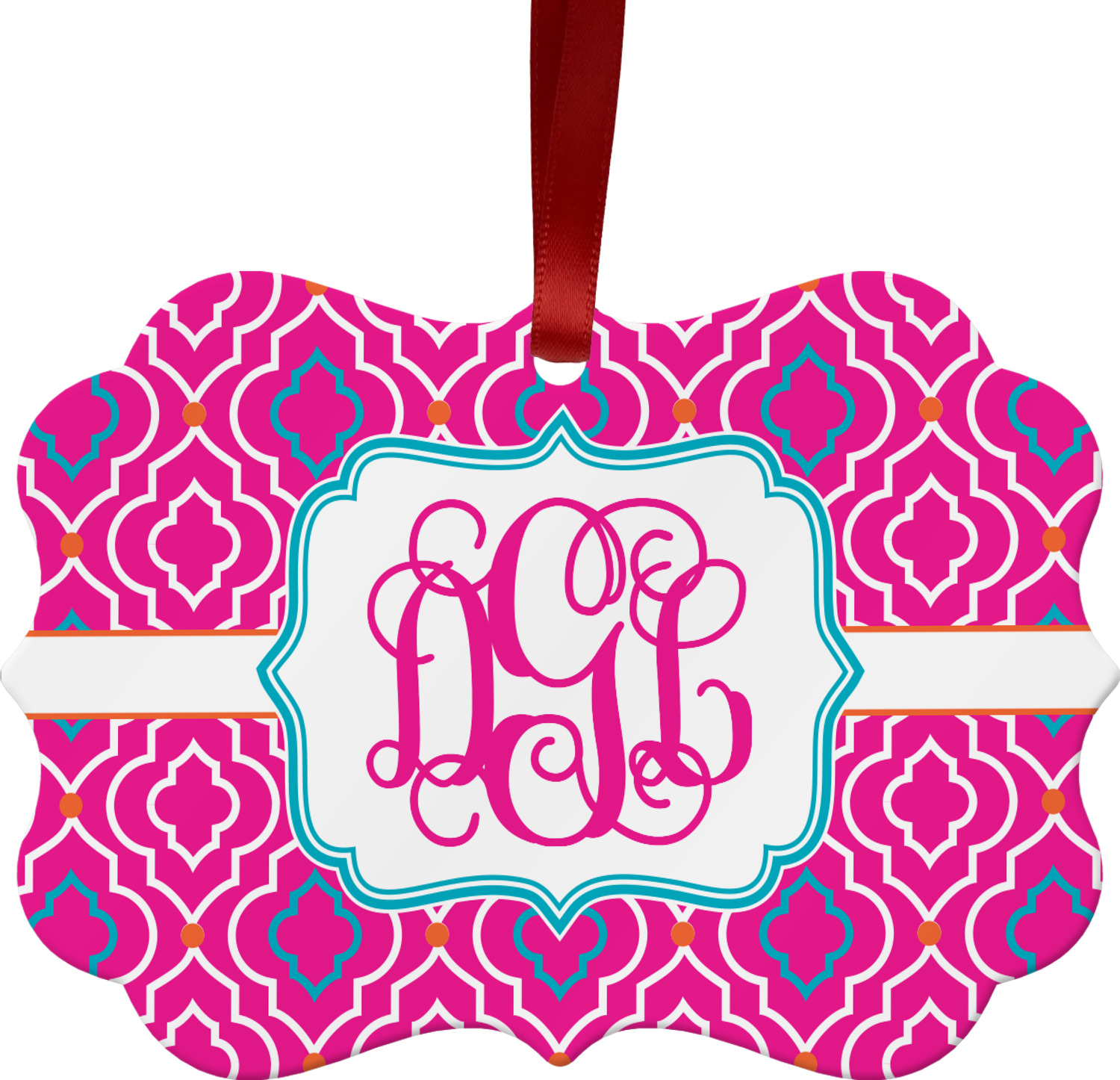 A fancy white label outlined in pink and turquoise is used to showcase the personalization of your choice.