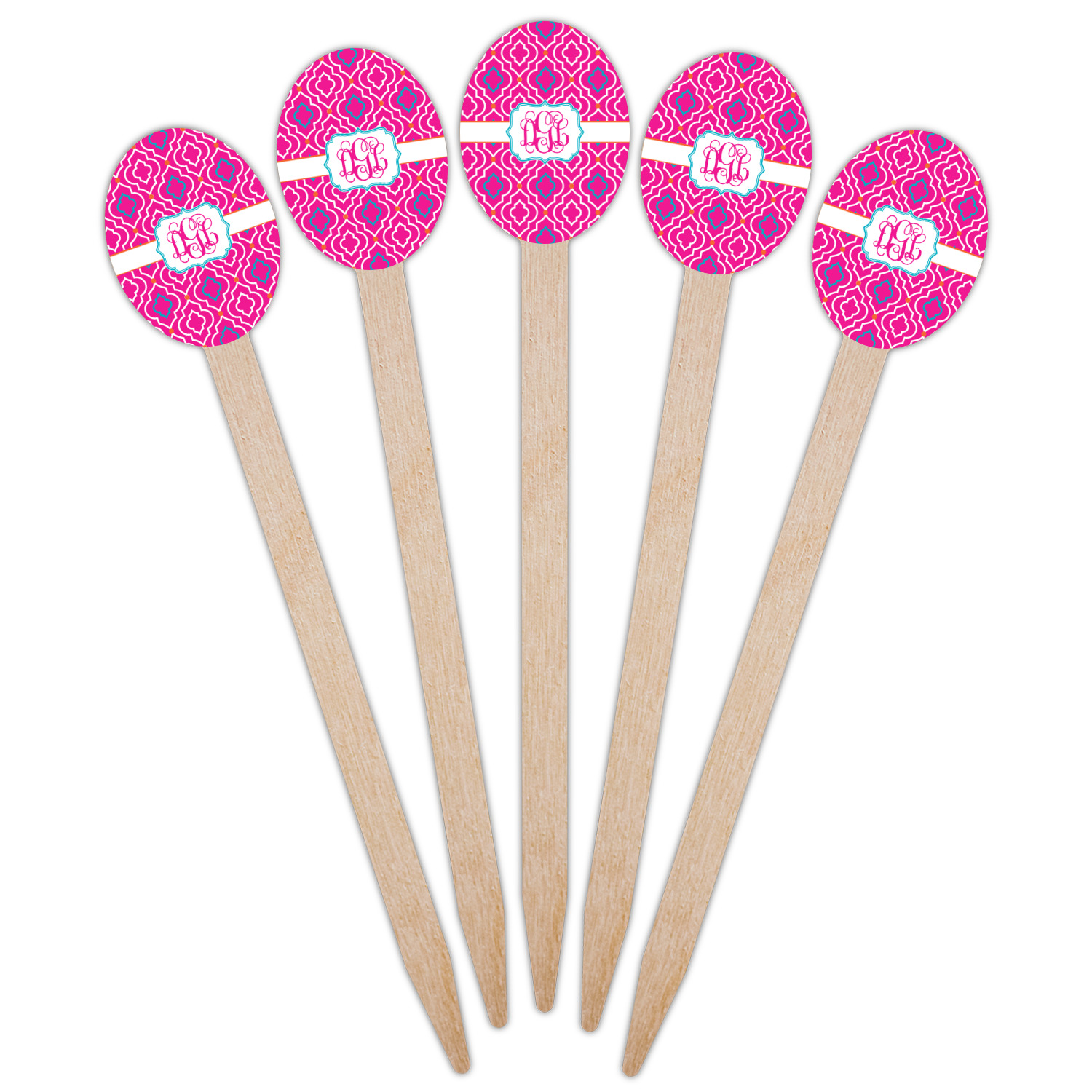 A fancy white label outlined in pink and turquoise is used to showcase the personalization of your choice.