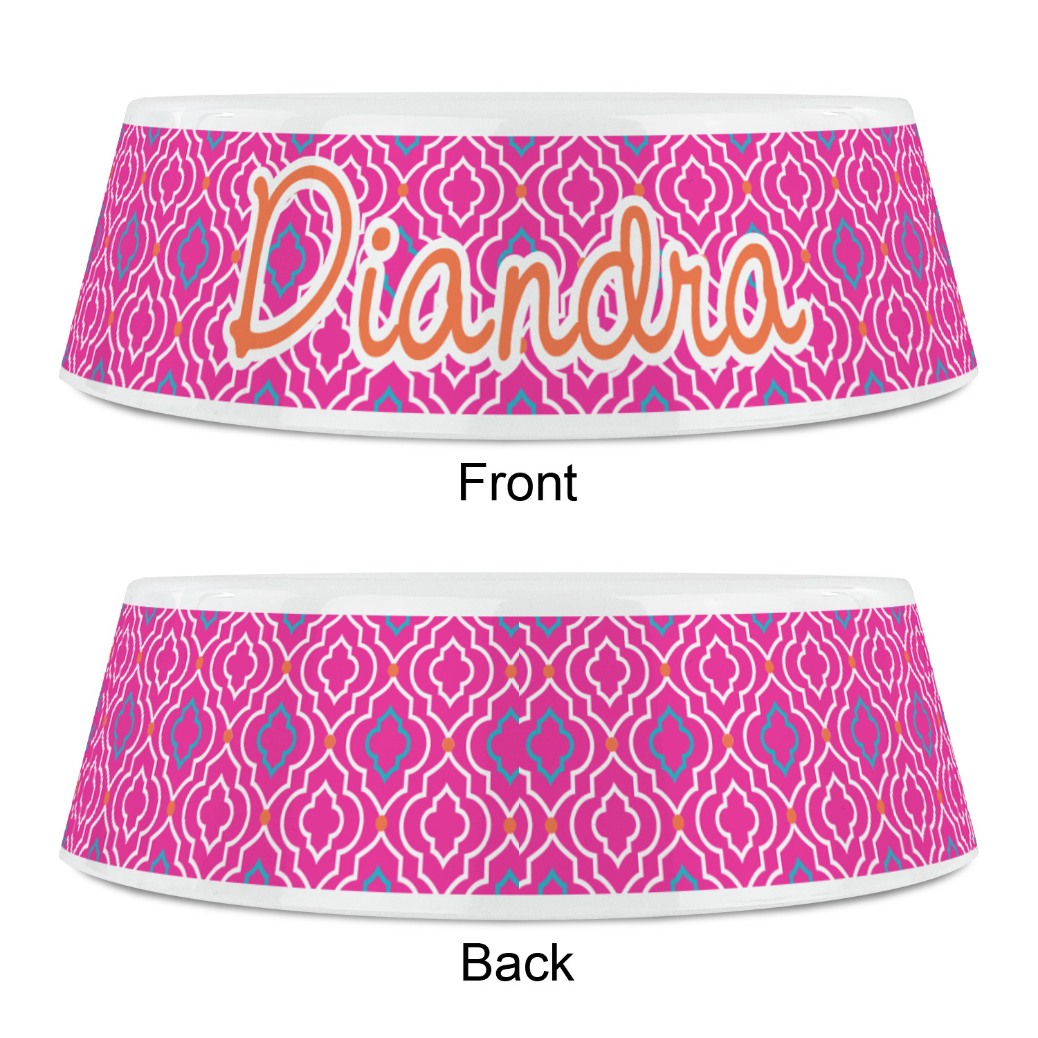 A fancy white label outlined in pink and turquoise is used to showcase the personalization of your choice.