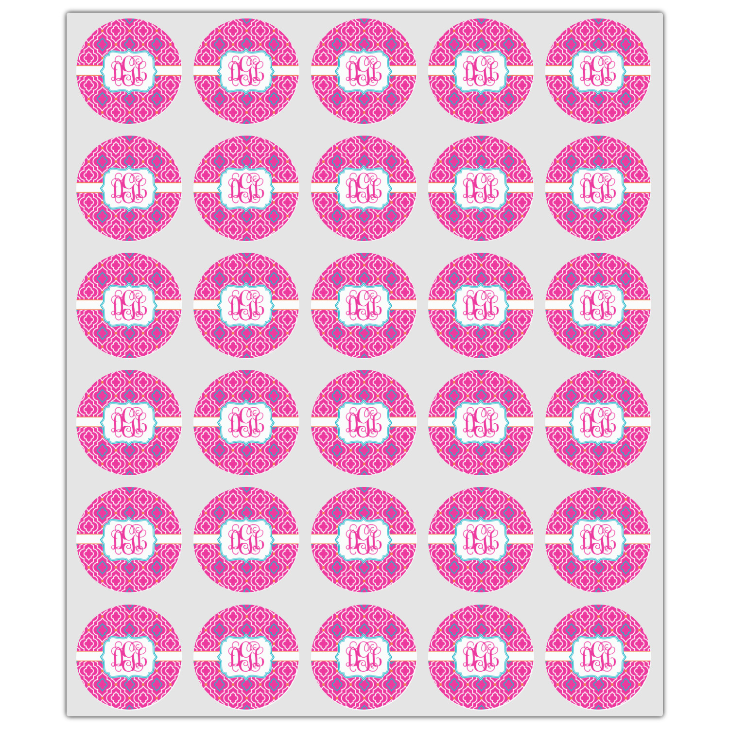A fancy white label outlined in pink and turquoise is used to showcase the personalization of your choice.