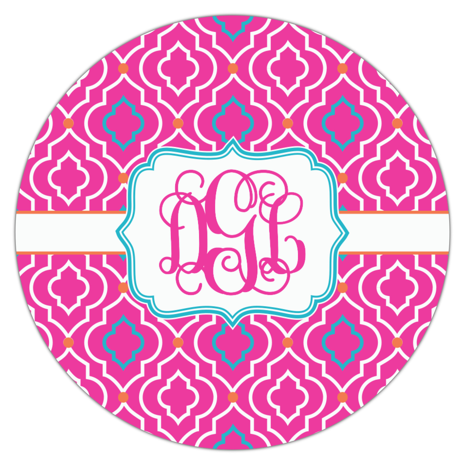 There is nothing old world about this Moroccan trellis design. Bright and vibrant pink, turquoise and orange come together to create one beautiful pattern. A wide white band trimmed in orange pulls the design together.
