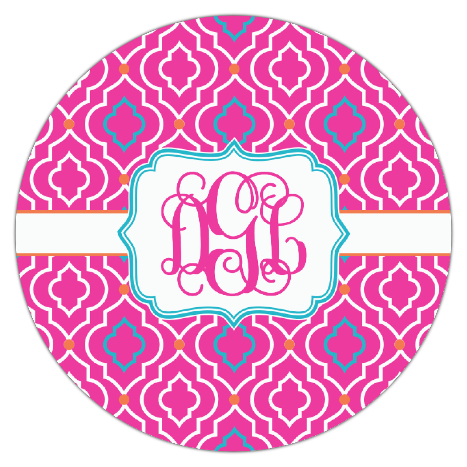 A fancy white label outlined in pink and turquoise is used to showcase the personalization of your choice.
