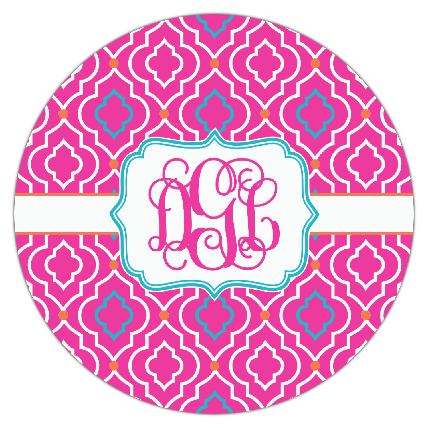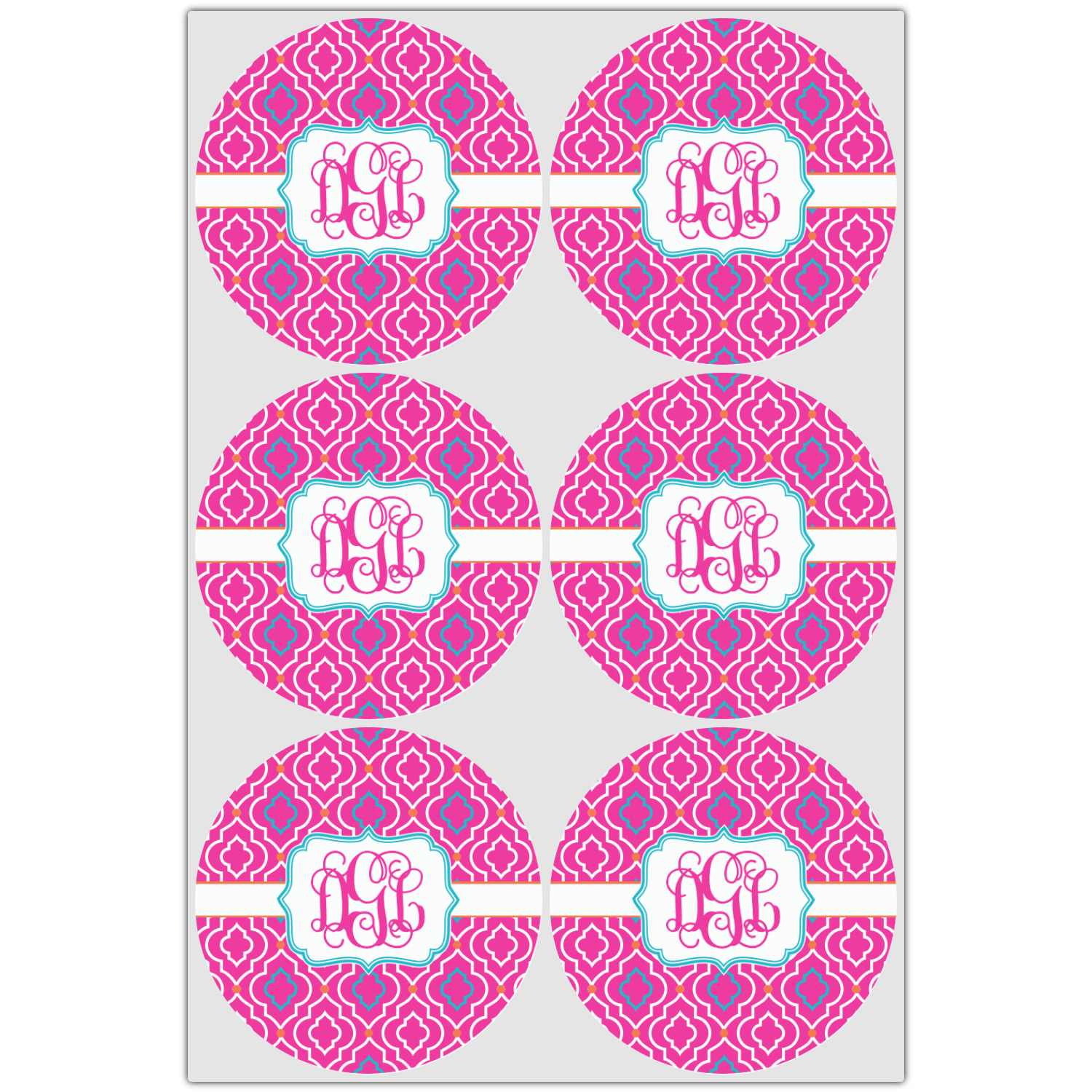 A fancy white label outlined in pink and turquoise is used to showcase the personalization of your choice.