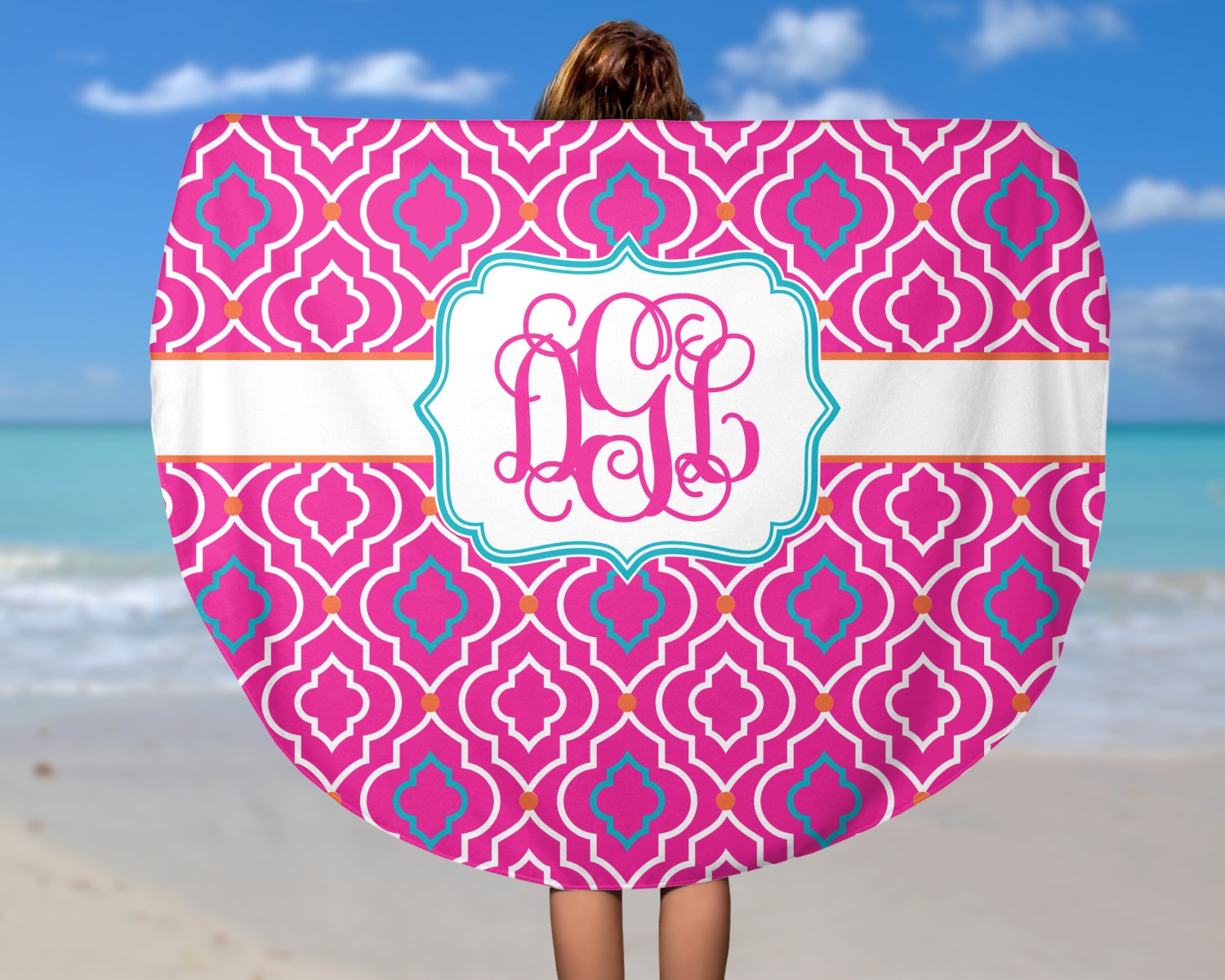 Think out of the box on your next beach, pool, or picnic day in style on your personalized round towel. This must have durable accessory is the perfect size for keeping you, and your possessions out of the sand. Sprawl out in the sun without getting your hands dirty, the unique round design allows for a full range of motion.
