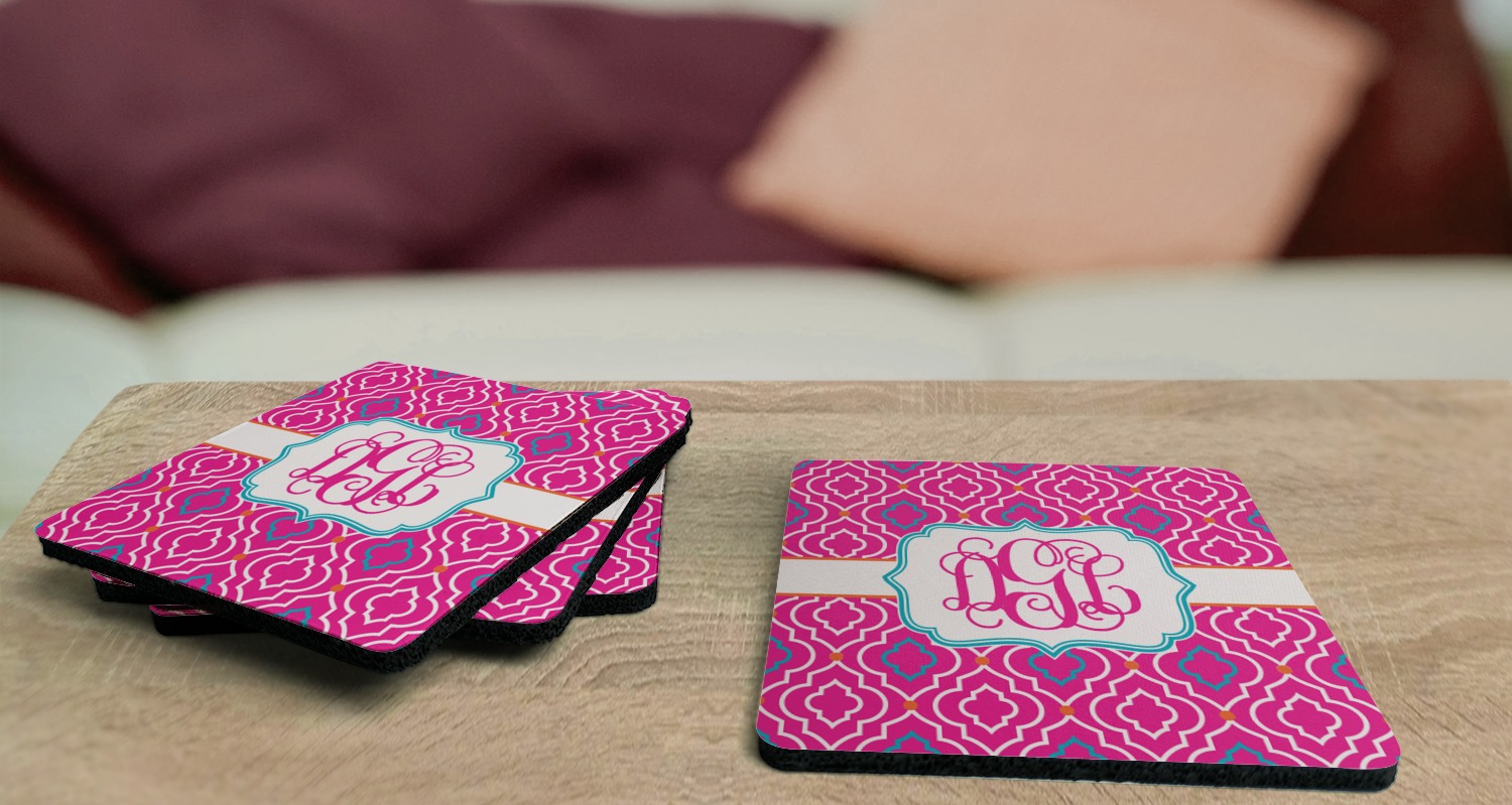 Replace your boring, run-of-the-mill coasters with a set of 4 personalized coasters! When personalized, these coasters will protect your beloved surfaces while adding to your home's decor! Thanks to your coasters bright colors and unique design, your guests will be eager to use them!