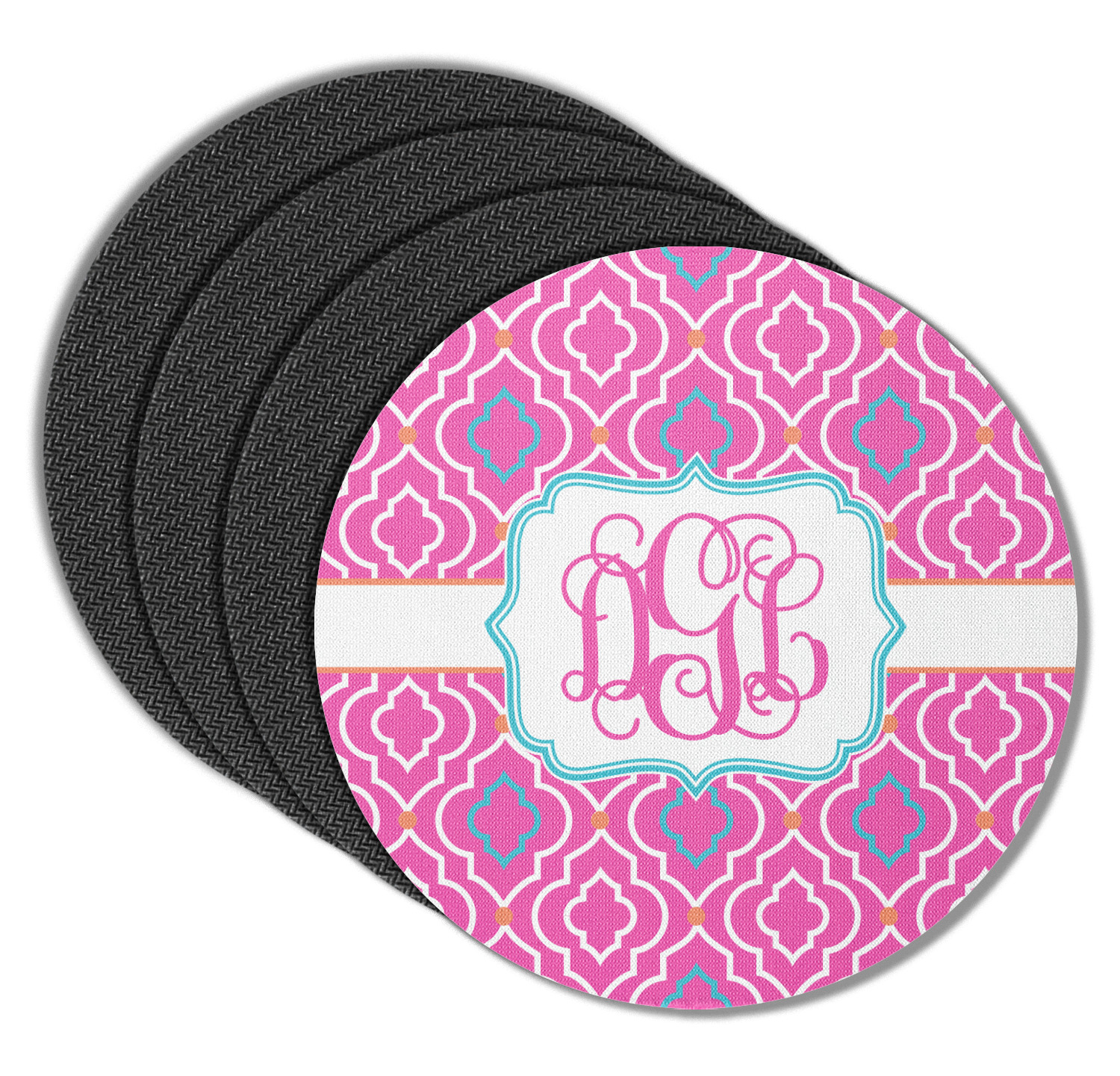 These drink coasters have a smooth, polyester top and a textured, rubber backing on its bottom. The non-slip rubber backing underneath works to keep any spills at bay. At 4 by 4 by 0.25 inches thick, these custom coasters are a suitable size for most drinkware. Your personalization is displayed atop the face of the cup coaster. We sell these rubber coasters in two different shapes: square and round. You can buy each shape as singulars or as a set of 4.