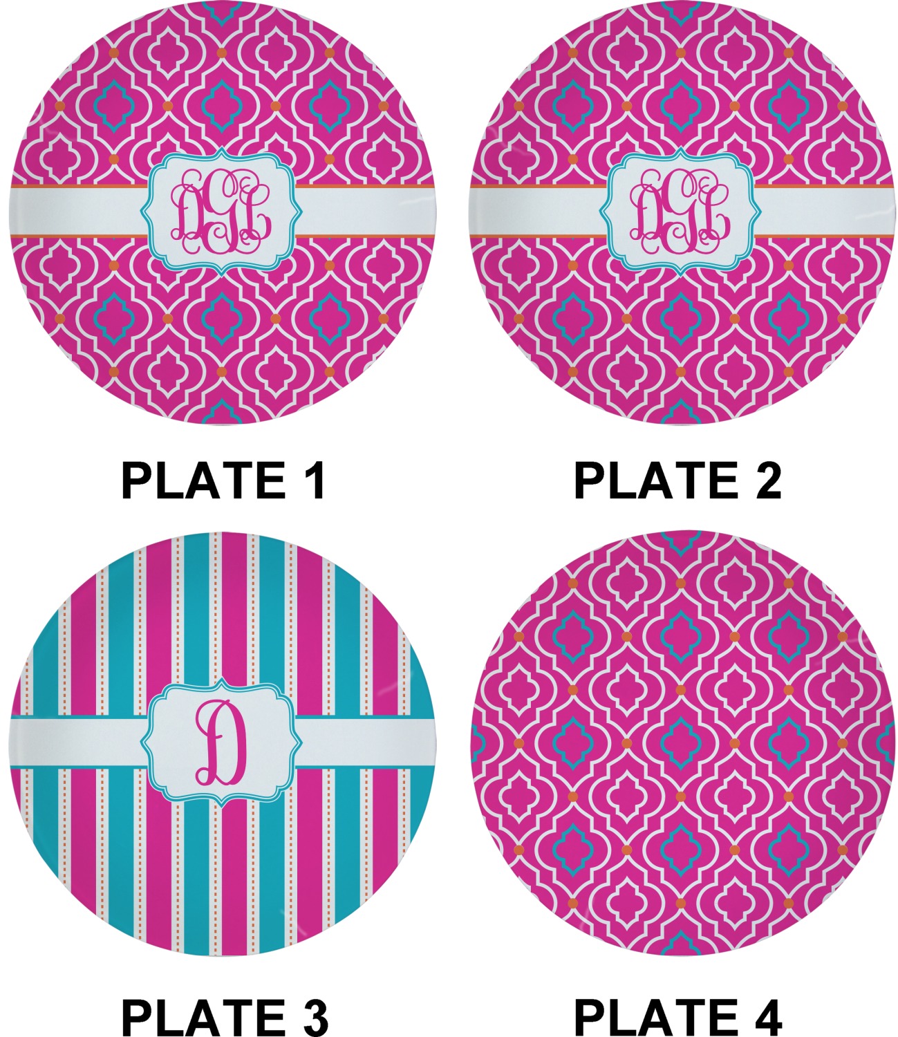 With a of designs and patterns, these plates are completely customizable. Choose a foodie design, complete with red-hot chili peppers, or go classic with stripes or plaid. Include your monogram or family name to make sure these plates never get lost at parties!