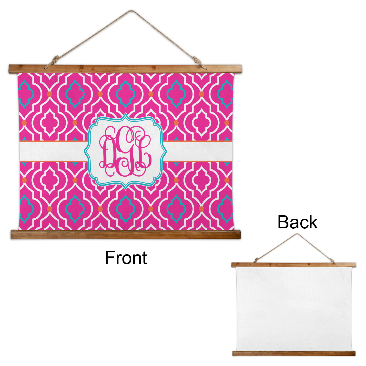 Made in two different orientations - portrait or landscape - both are 26" x 36". Your design is printed on a high quality polyester fabric with hemmed edges. The wood on the top and bottom of the tapestry is 1.25" tall and 0.25" thick and there are two pieces on top and bottom which sandwich the fabric.