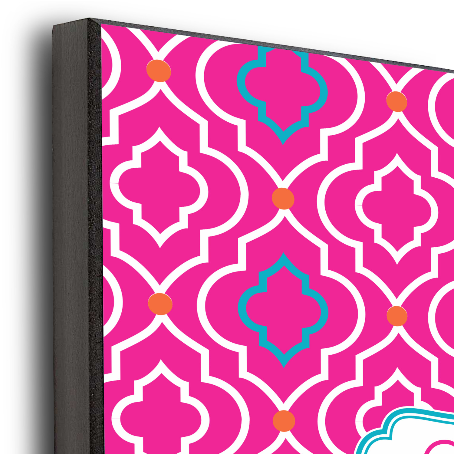 There is nothing old world about this Moroccan trellis design. Bright and vibrant pink, turquoise and orange come together to create one beautiful pattern. A wide white band trimmed in orange pulls the design together.