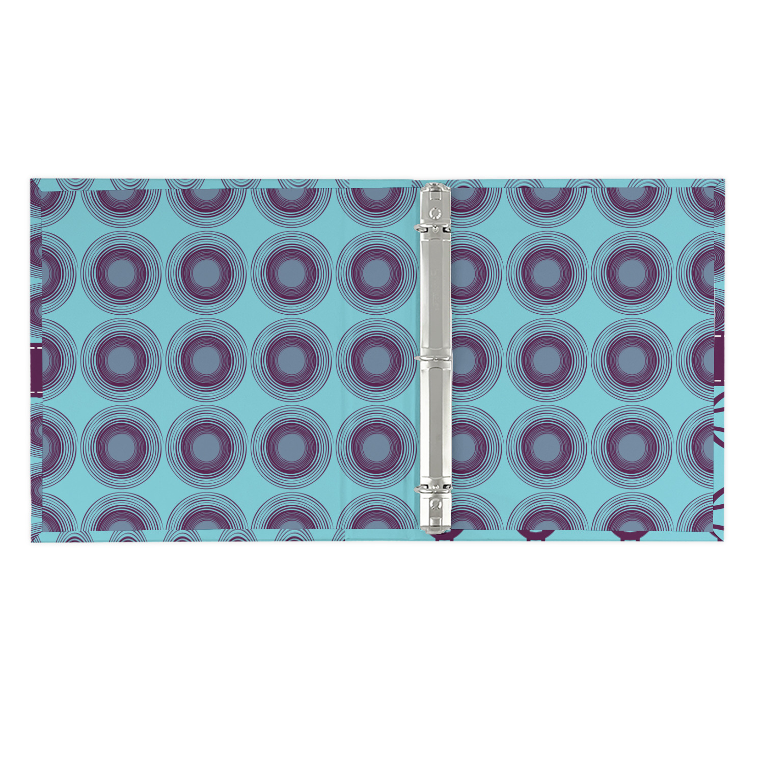 Made from a sturdy cardboard base with a full high quality canvas textured vinyl wrap with the design of your choice. Unlike our standard 3-ring binder with the full wrap design your artwork wraps from the front and back and into the inside of the binder.