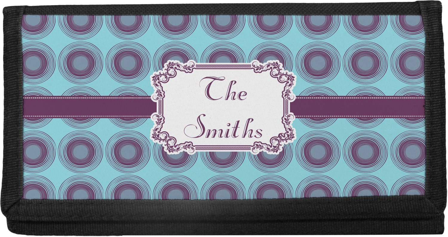 The checkbook cover is made of a durable canvas and the front flap is decorated with a vibrant design of your choosing. With 4 slots for credit cards or IDs, and 2 compartments for your checkbook register, cash, receipts, business cards, and more; this checkbook cover could easily double as a wallet.