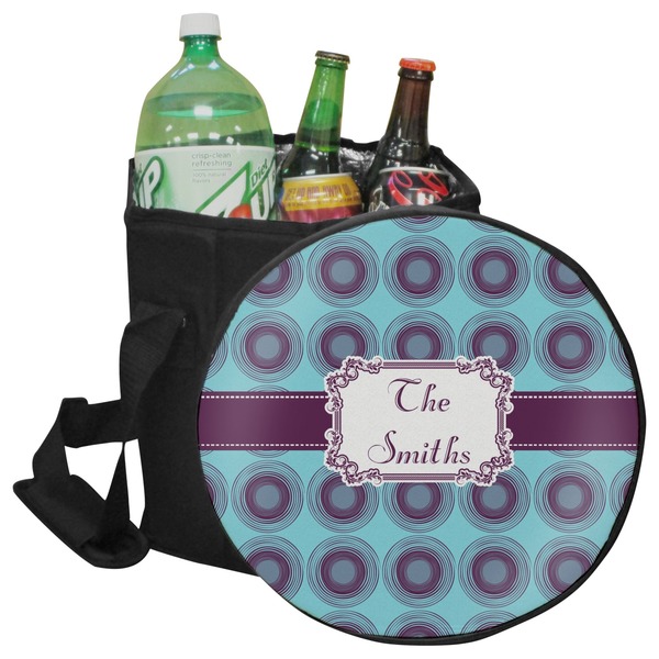 Our collapsible insulated coolers feature a unique six-sided hexagon shape, are lightweight, durable and can be turned into a seat. This cooler is fully insulated with silver foil lining to keep food and drinks hot or cold, and has a 12-quart capacity. Although this cooler collapses for easy transport, hidden inside are composition panels made of sturdy wood that give the frame strength and allow this cooler to be used as a seat. Simply sit down on the personalized cover and give your legs a break! (Maximum weight capacity of 200 pounds.)