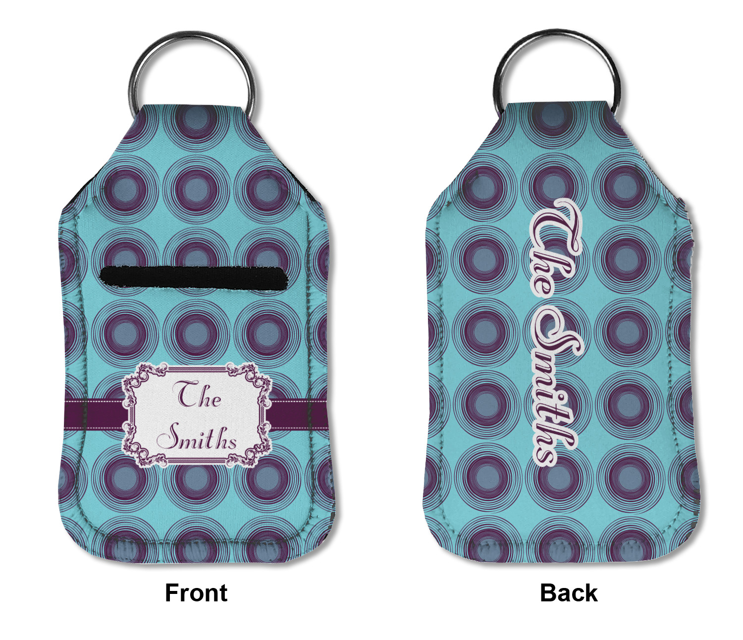 Each hand sanitizer holder comes with its own empty travel-sized, refillable hand sanitizer sure to fit snug in your customized sanitizer case! Our hand sanitizer cases are a durable, yet soft neoprene material sure to last any daily activities or travel agenda. Customize and personalize a hand sanitizer bottle holder with one of our two sizes - small (4.25" x 2.25") or large (5.5" x 2.5"). Each travel sanitizer holder comes with a keyring for attachment on bags, keys, or more!