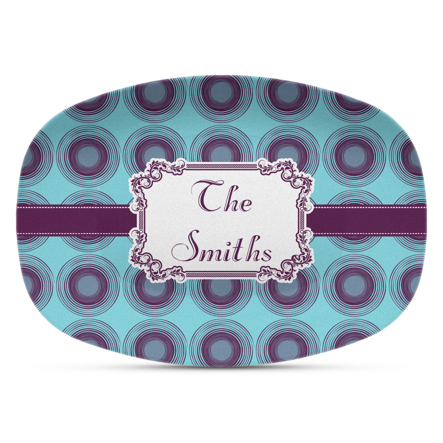 These serving platters are made from a composite, thermo-set, polymer plastic that gives it the versatility, durability, and weight of a melamine platter, without any of the downsides of melamine. These personalized platters, can withstand temperatures up to 250 degrees Fahrenheit, for up to 60 minutes. No harmful chemicals, such as BPA, formaldehyde, and DEHPs were used in the manufacturing of this product. This large serving platter measures at 14" x 10.25", and is spacious enough to hold any of your appetizers or bite-sized desserts. The platter exhibits your personalization across the entirety of its front.