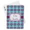 The customization / personalization is printed on the back side. The playing cards have a low gloss coating on both sides. The cards are packaged in a clear plastic box.